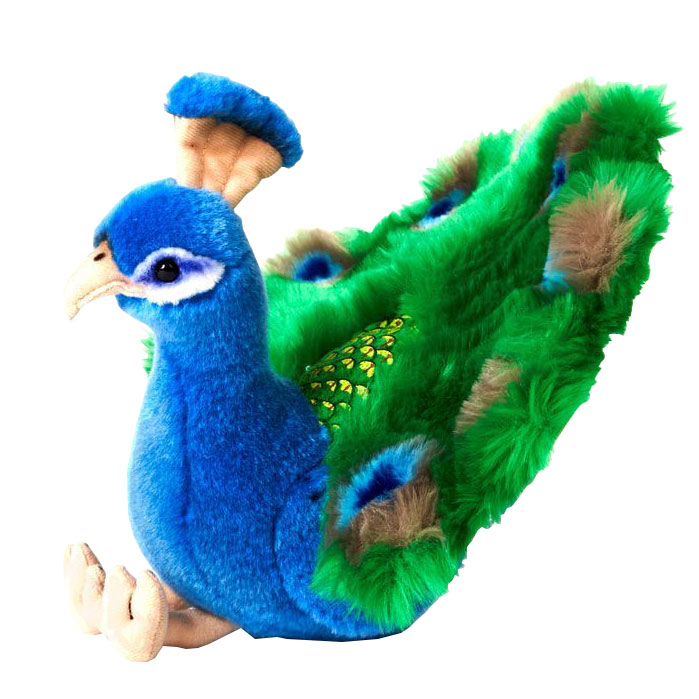 Urocza maskotka dla dzieci przedstawiająca pięknego i kolorowego pawia. Zabawka jest wykonana z miękkich i przyjemnych w dotyku materiałów.