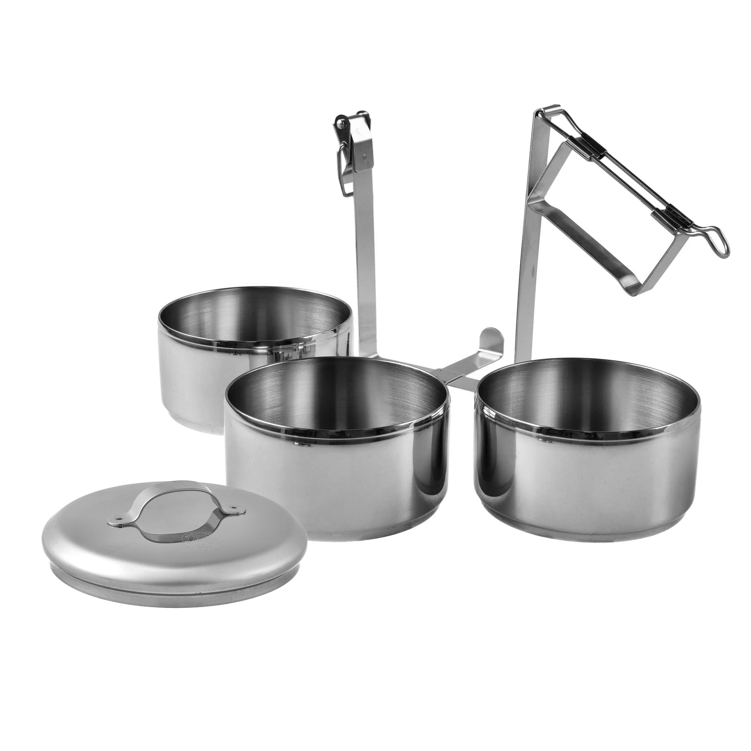 Menażka Food Carrier składa się z trzech garnuszków o identycznych rozmiarach oraz pokrywki. Wszystko wykonane z wysokiej klasy stali nierdzewnej 304, wytrzymałej i odpornej na korozję. Garnuszki są połączone specjalnym uchwytem, który zapewnia zestawi stabilność i ułatwia jego transport.