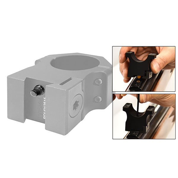 Aluminiowa, precyzyjna konstrukcja pierścieni gwarantuje pełną osiowość montażu lunety, stabilne utrzymanie zera oraz odporność na odrzut broni. Pierścienie montażowe z serii Precision Optics Interface posiadają wykręcany kołek stopujący chroniący optykę przed dwukierunkowym odrzutem oraz obejmę zaciskową na sprężynujących prowadnicach gwarantującą utrzymanie zera.