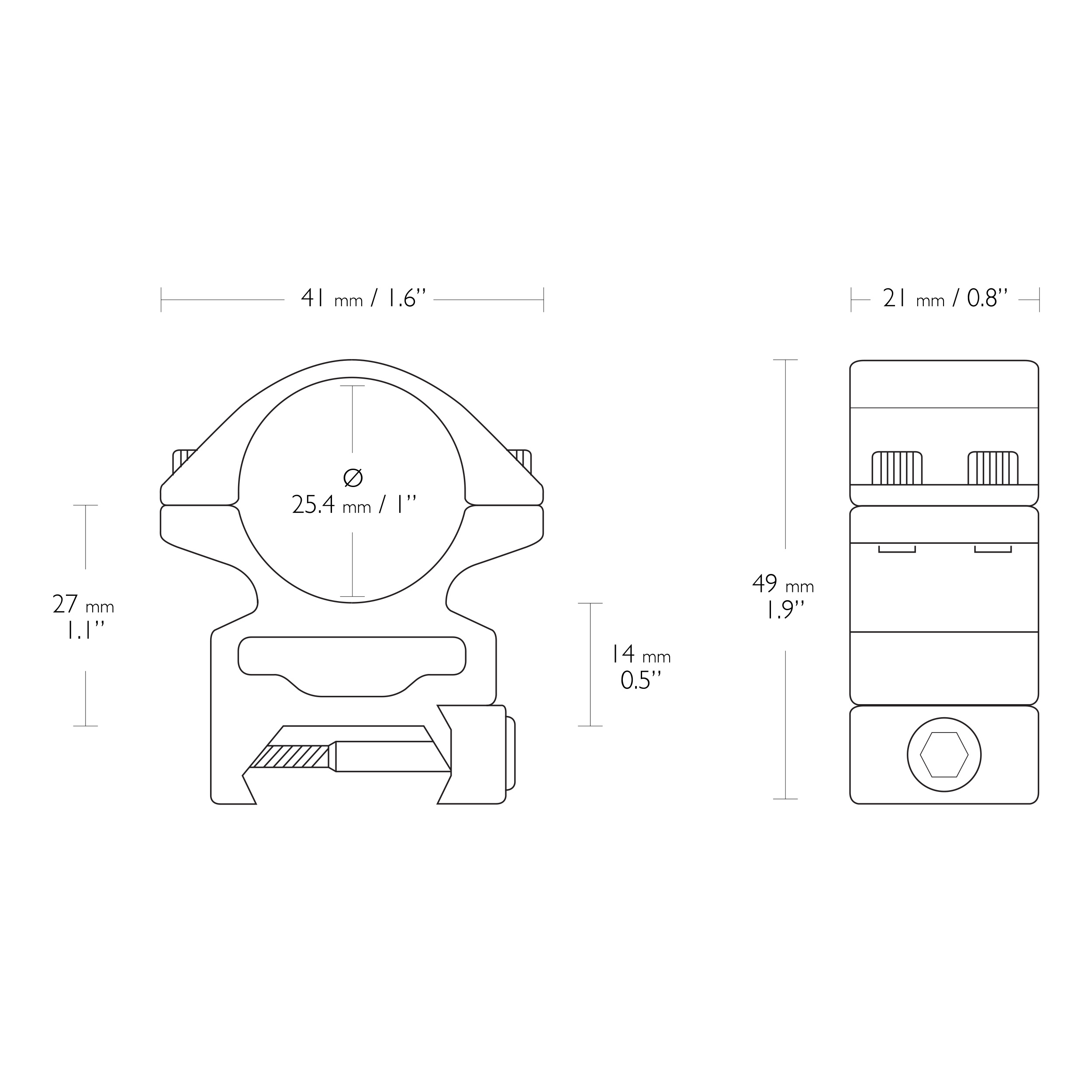 Cechy montażu lunety Hawke Match 25,4 mm: