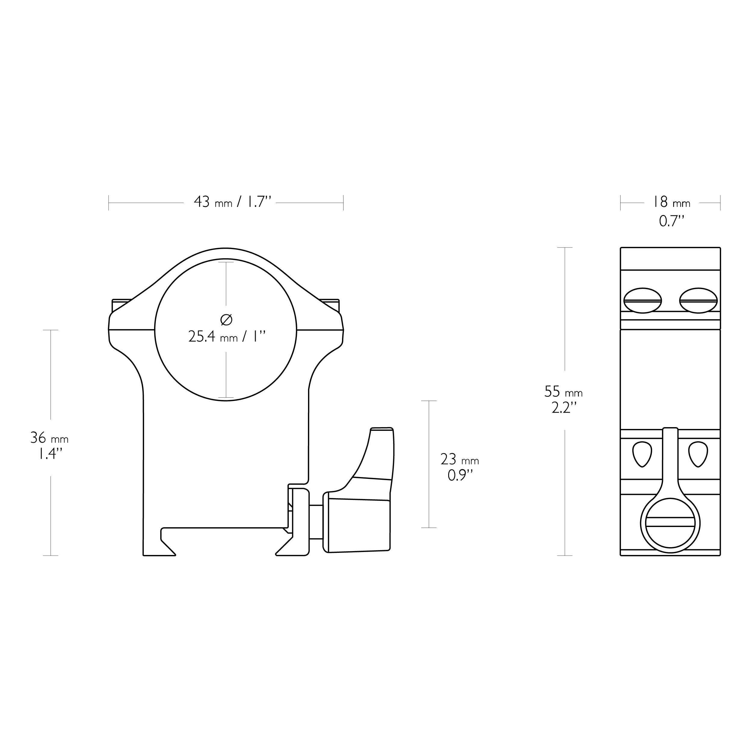 Dwuczęściowy montaż przeznaczony do celowników optycznych o tubusie 1". Bardzo dobre wykonanie, trwałość oraz specjalna wewnętrzna powłoka - zapobiegająca rysowaniu się lunety - świadczą o najwyższej jakości montażu.