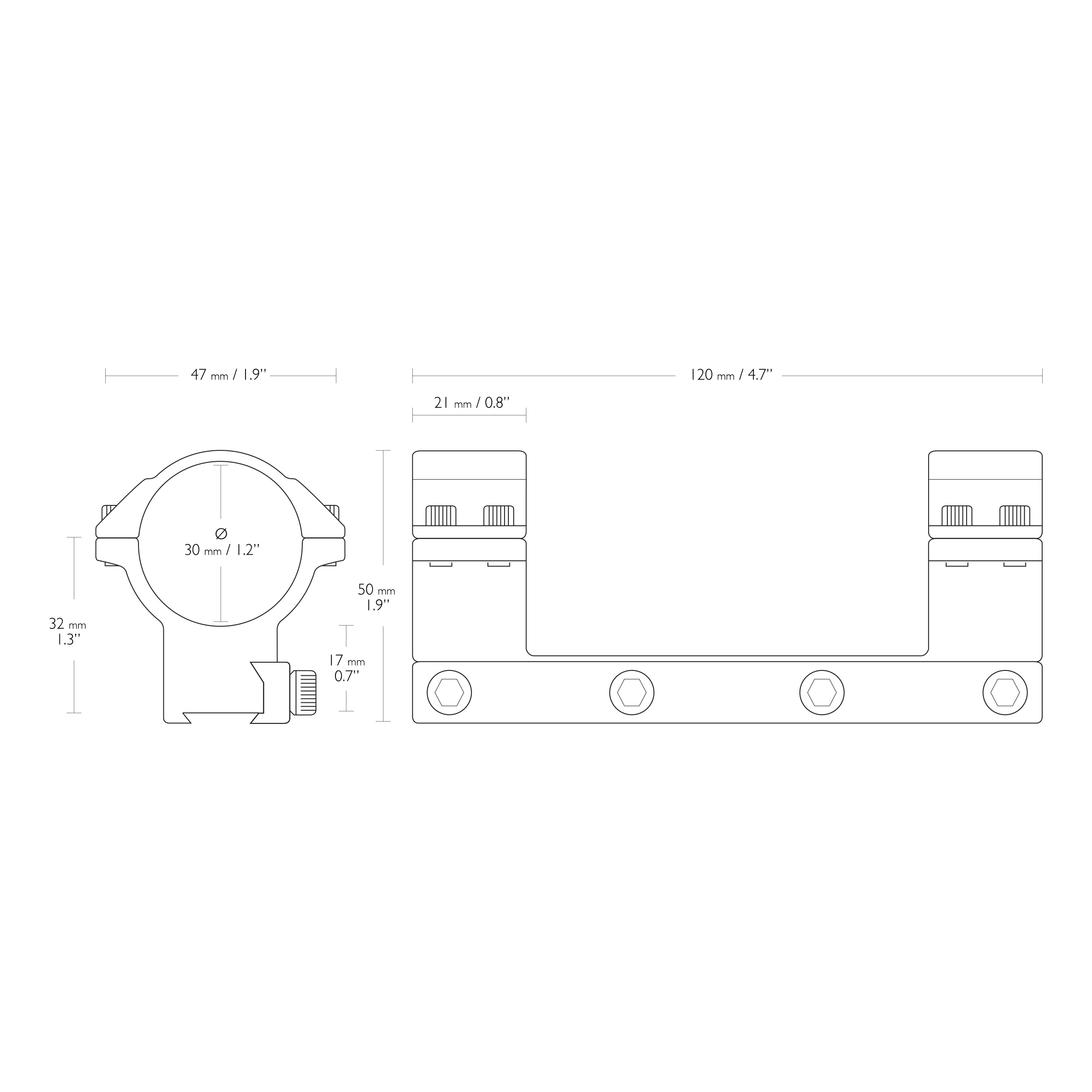 Pierścienie montażowe mocuje się czterema śrubami i dokręca przy użyciu dołączonego klucza. Wytrzymałość na odrzut nawet silnych wiatrówek gwarantują cztery śruby mocujące i kołek stopujący. Wewnętrzne ściany pierścieni okryto taśmą ochronną, która zapobiega porysowaniu tubusa lunety.