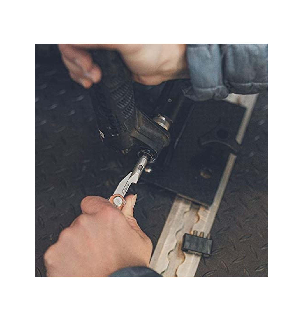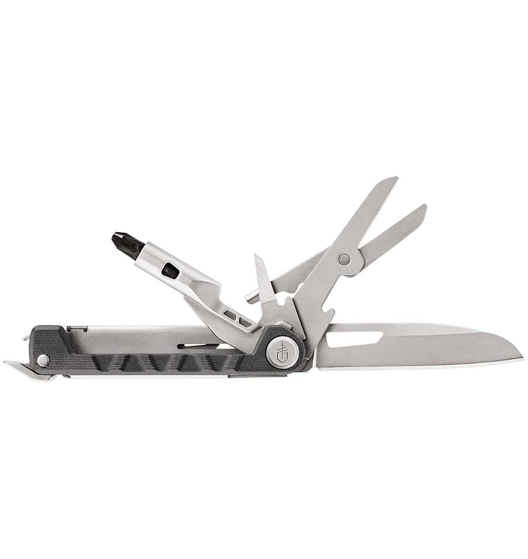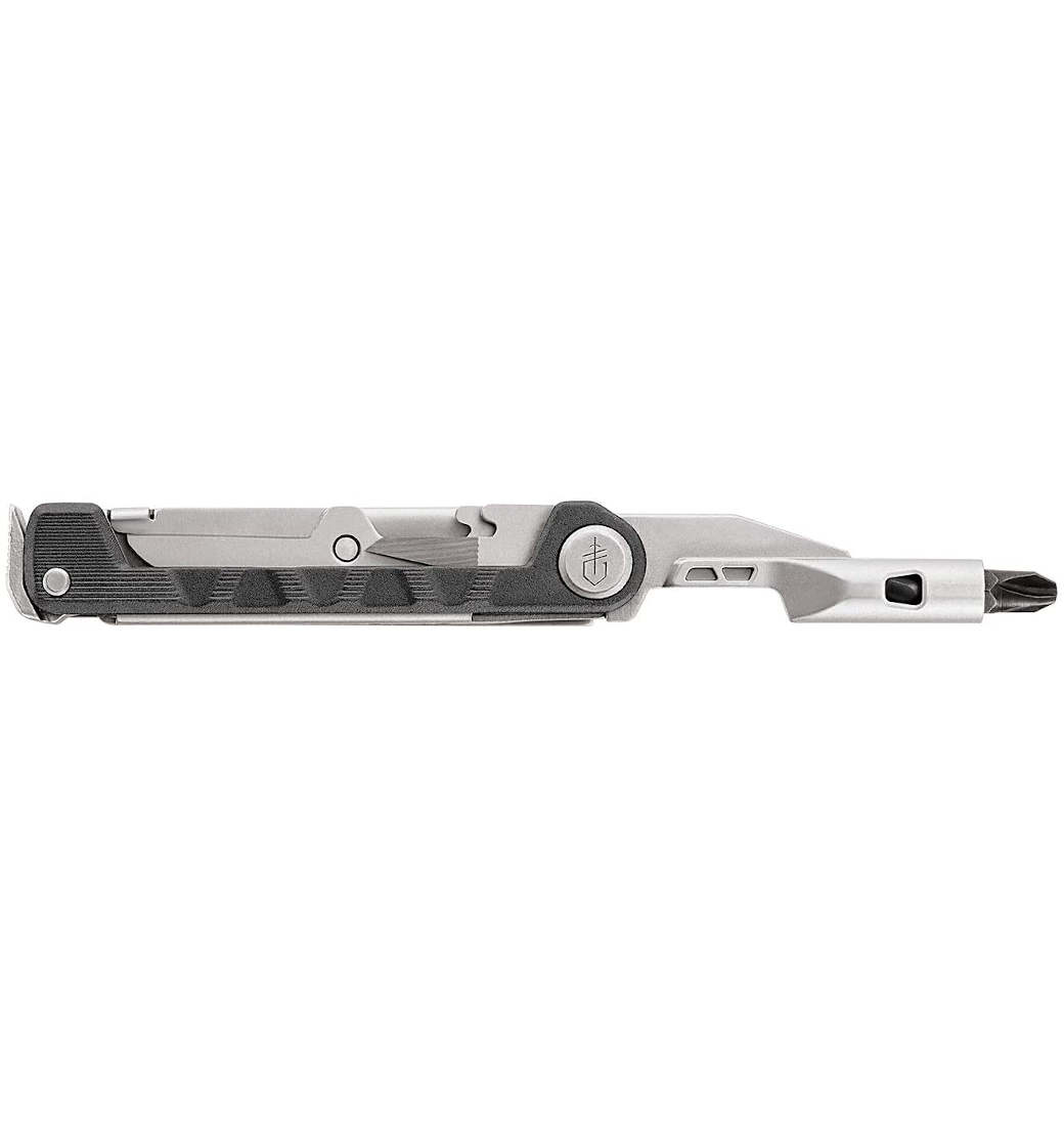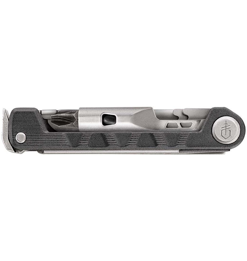 Multitool Gerber ze śrubokrętem na wymienne bity. Teraz jednym narzędziem otworzysz butelkę piwa, rozkręcisz rower i pokroisz kiełbasę. To sprytny projekt, który mieści się w kieszeni jak nóż składany i działa jak w pełni funkcjonalne narzędzie wielofunkcyjne. Armbar zawiera narzędzia do wykonywania zadań, z którymi scyzoryk zwyczajnie sobie nie radzi: szydło, łom, otwieracz do butelek i 2,5-calowy wkrętak z dwustronnym bitem. Obsługuje również wszystko, co może zrobić twój scyzoryk za pomocą jednoręcznego ostrza o cienkich krawędziach i nożyczek. Najważniejsze funkcje i elementy narzędzia: