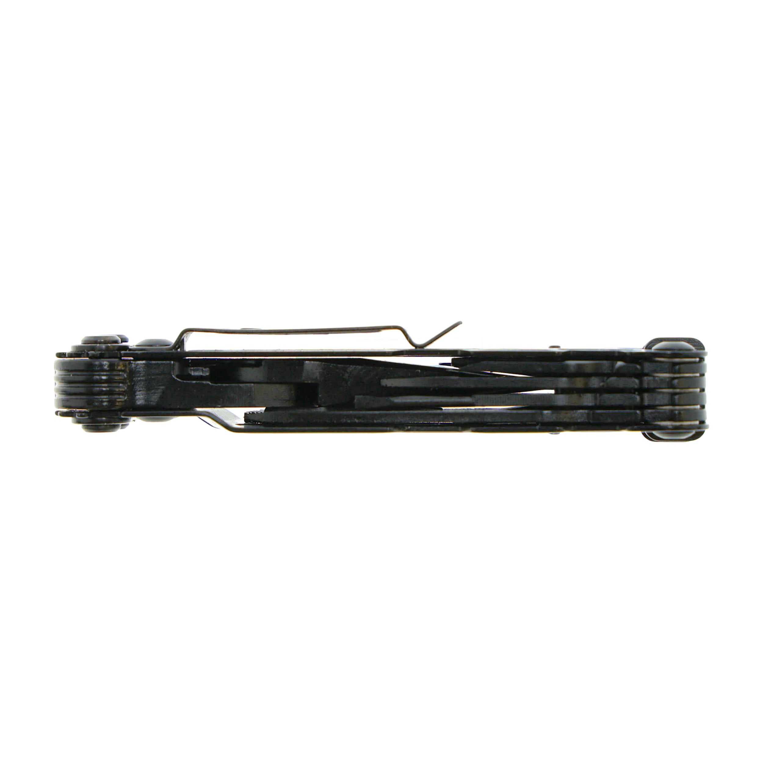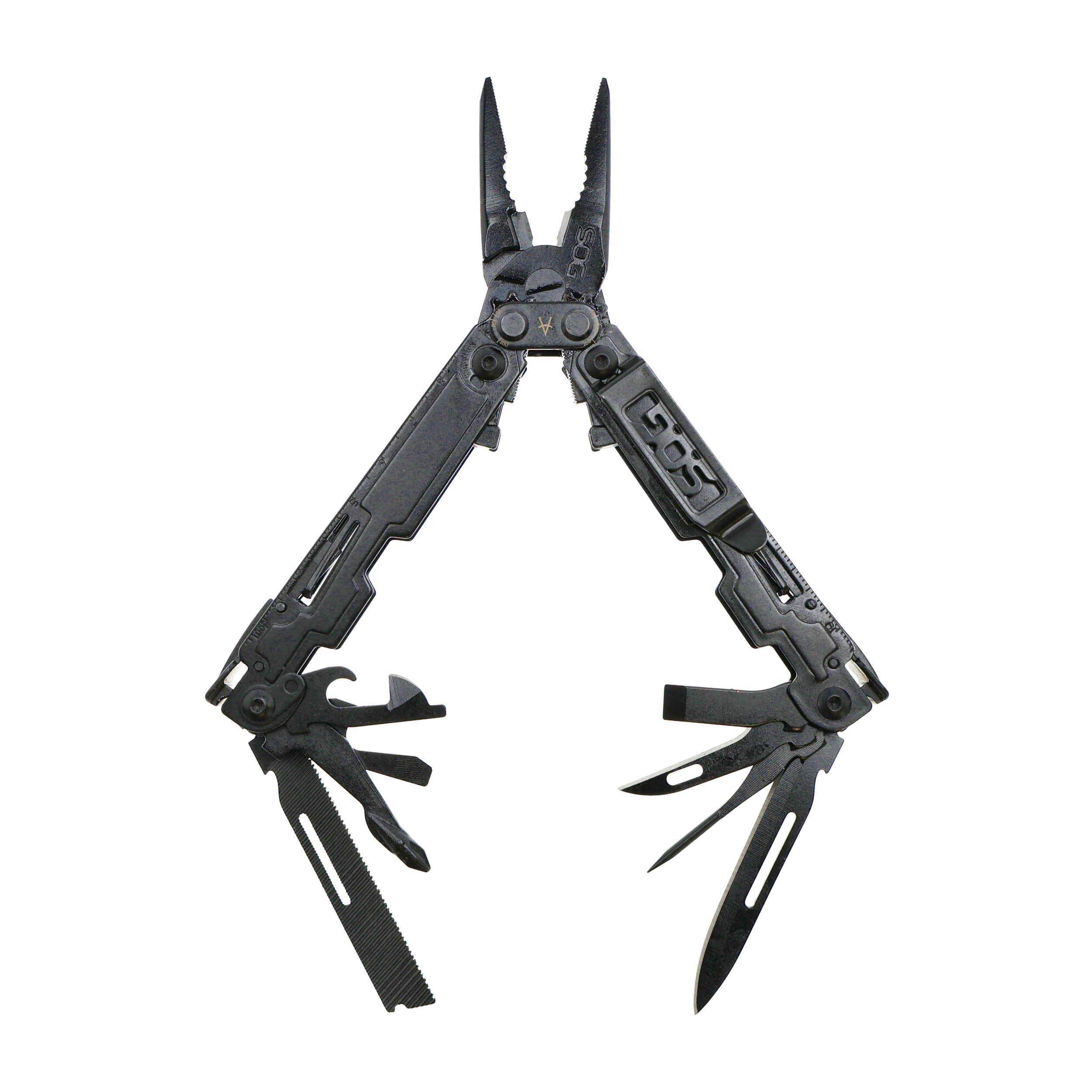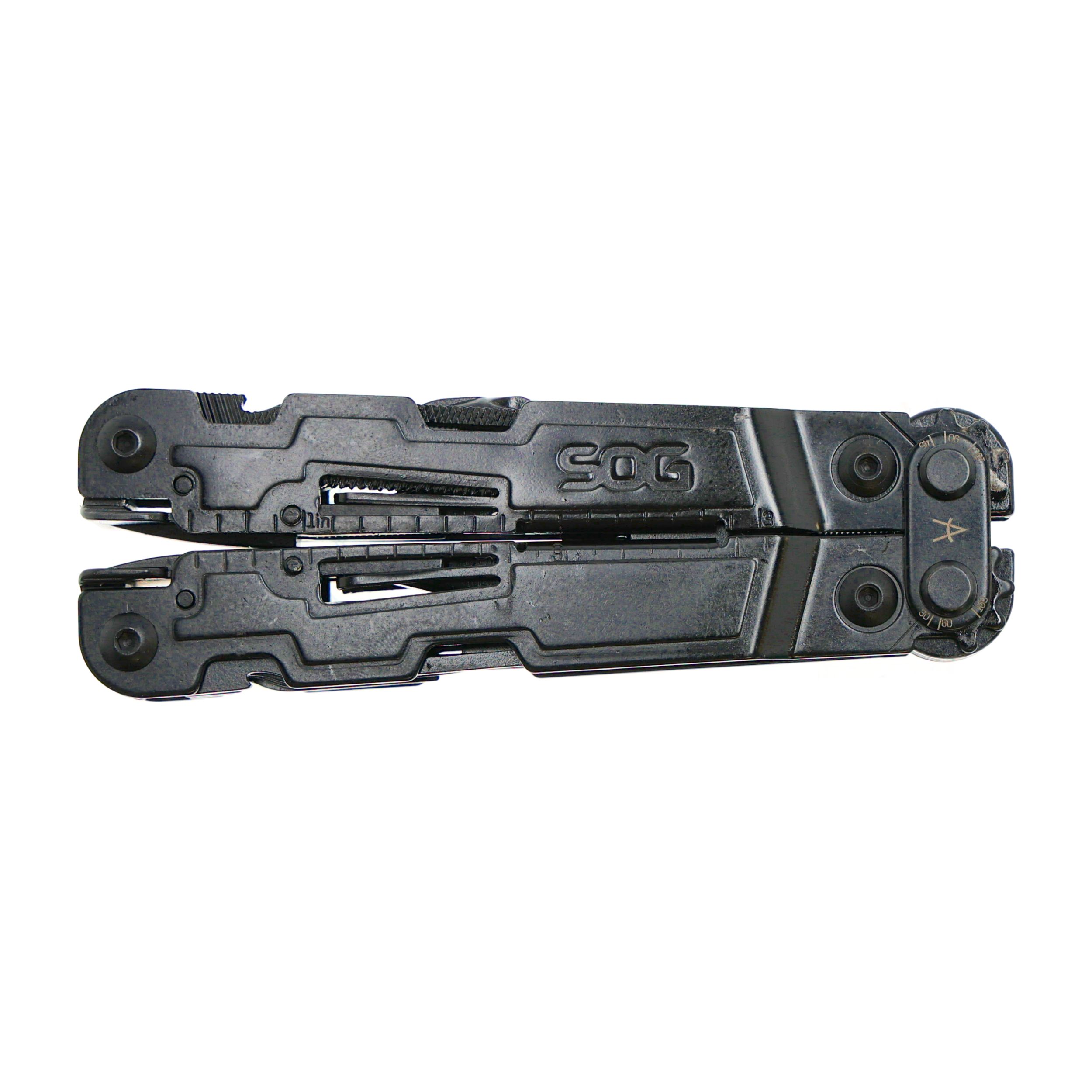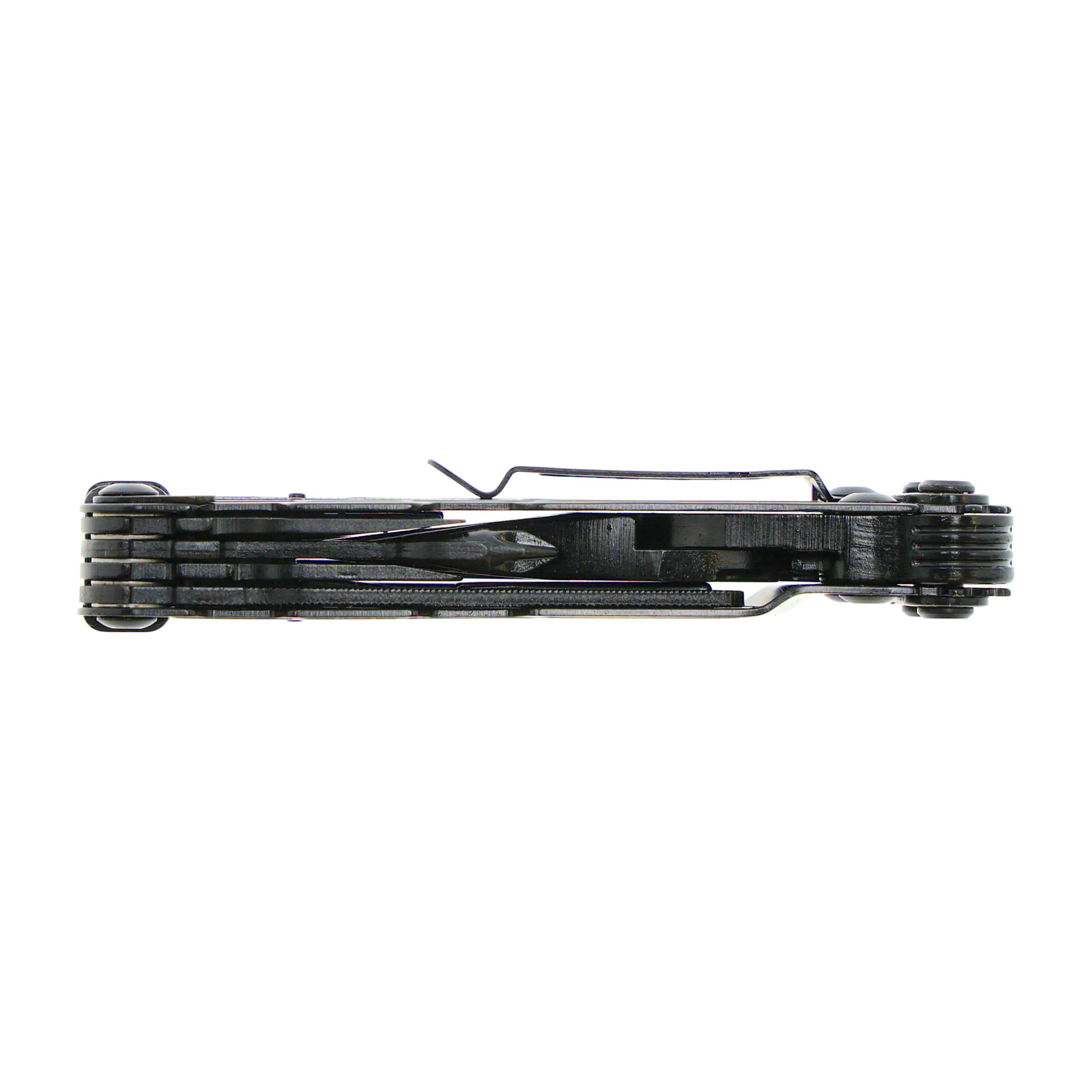 Wbudowane narzędzia: kątomierz, baza do bitów, kombinerki standardowe, korkociąg, linijka cm/in, nożyczki, otwieracz do puszek, otwieracz do butelek, ostrze gładkie, przebijak, przecinak do drutu, przecinak do pasów bezpieczeństwa, śrubokręt krzyżakowy, śrubokręt płaski