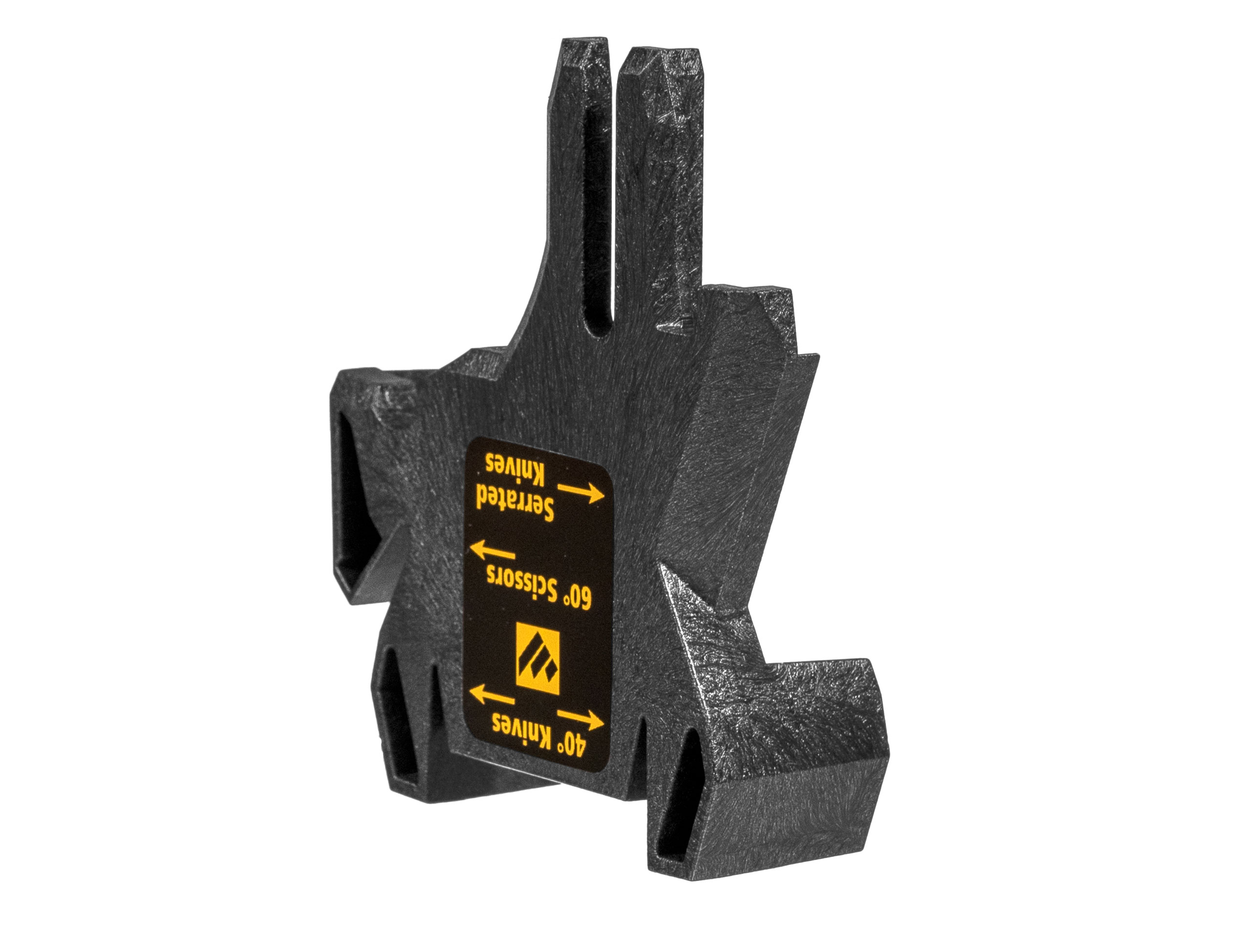 Nakładka ma także prowadnice do ostrzenia nożyczek (60°) oraz ząbkowanych krawędzi tnących.