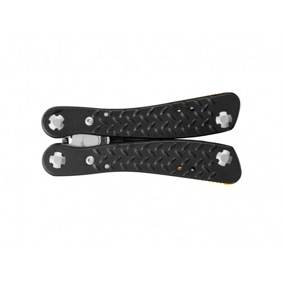 Wbudowane narzędzia: baza do bitów, kombinerki standardowe, otwieracz do puszek, otwieracz do butelek, ostrze gładkie, ostrze ząbkowane, pilnik, przecinak do drutu, szydło, śrubokręt krzyżakowy, śrubokręt płaski wąski, 3 bity imbusowe, 3 bity krzyżakowe,