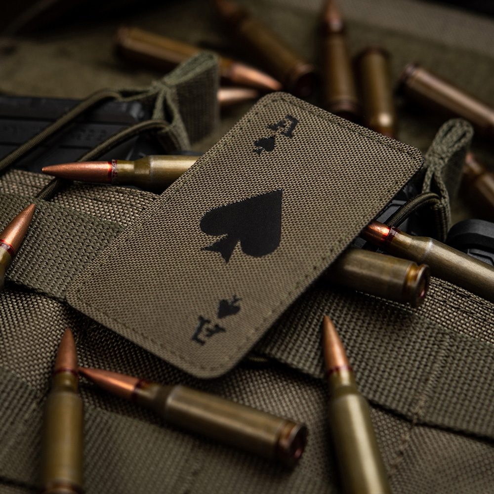 M-Tac naszywka Ace of Spades Laser Cut. Amerykanin, który służył w Wietnamie w latach 1967-1968, opowiada o tym, jak interpretowano asa pik: „As pik był kartą śmierci. Jego użycie w Wietnamie oznaczało coś w rodzaju „Rozumiem, że moim zadaniem jest zabijanie wrogów. I jestem na to gotowy”