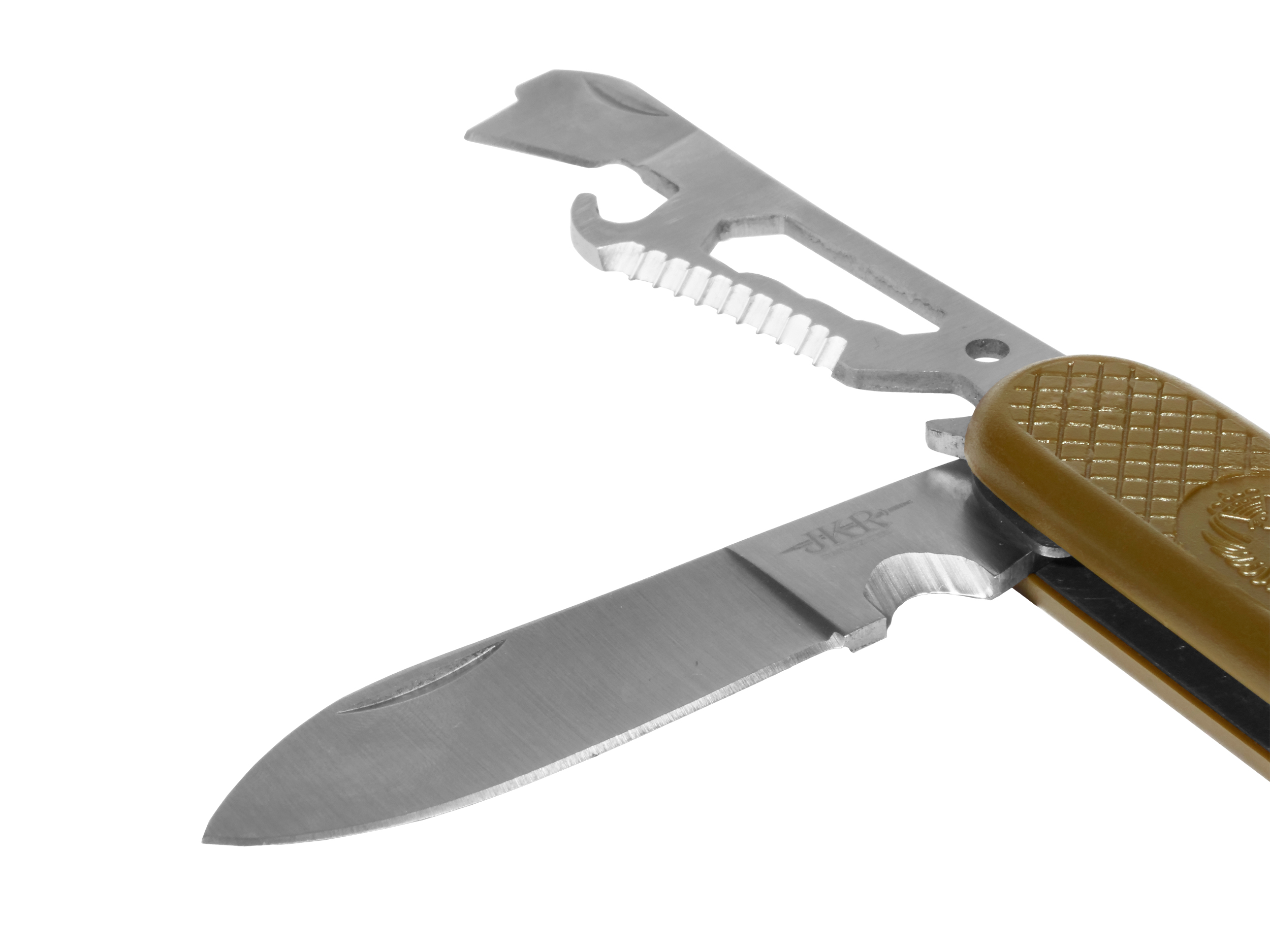 Funkcje: otwieracz do butelek, piła, otwieracz do konserw, nóż