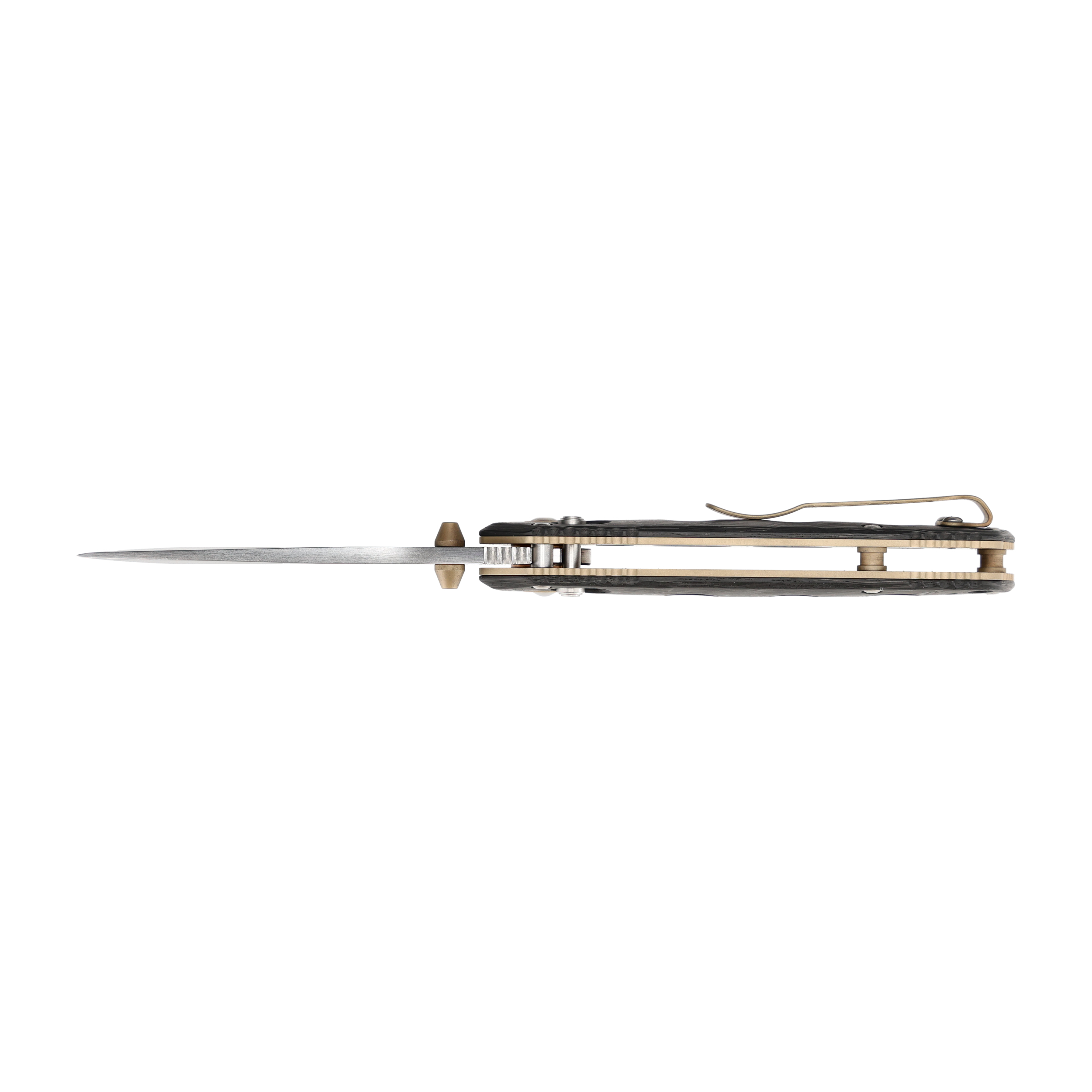 Dyskretne przenoszenie noża Benchmade Mini Adamas w kieszeni umożliwia wysoko osadzony klips z możliwością montażu po obu stronach rękojeści. Klips w złotym kolorze, doskonale łączy się z efektownie wyglądającą rękojeścią.