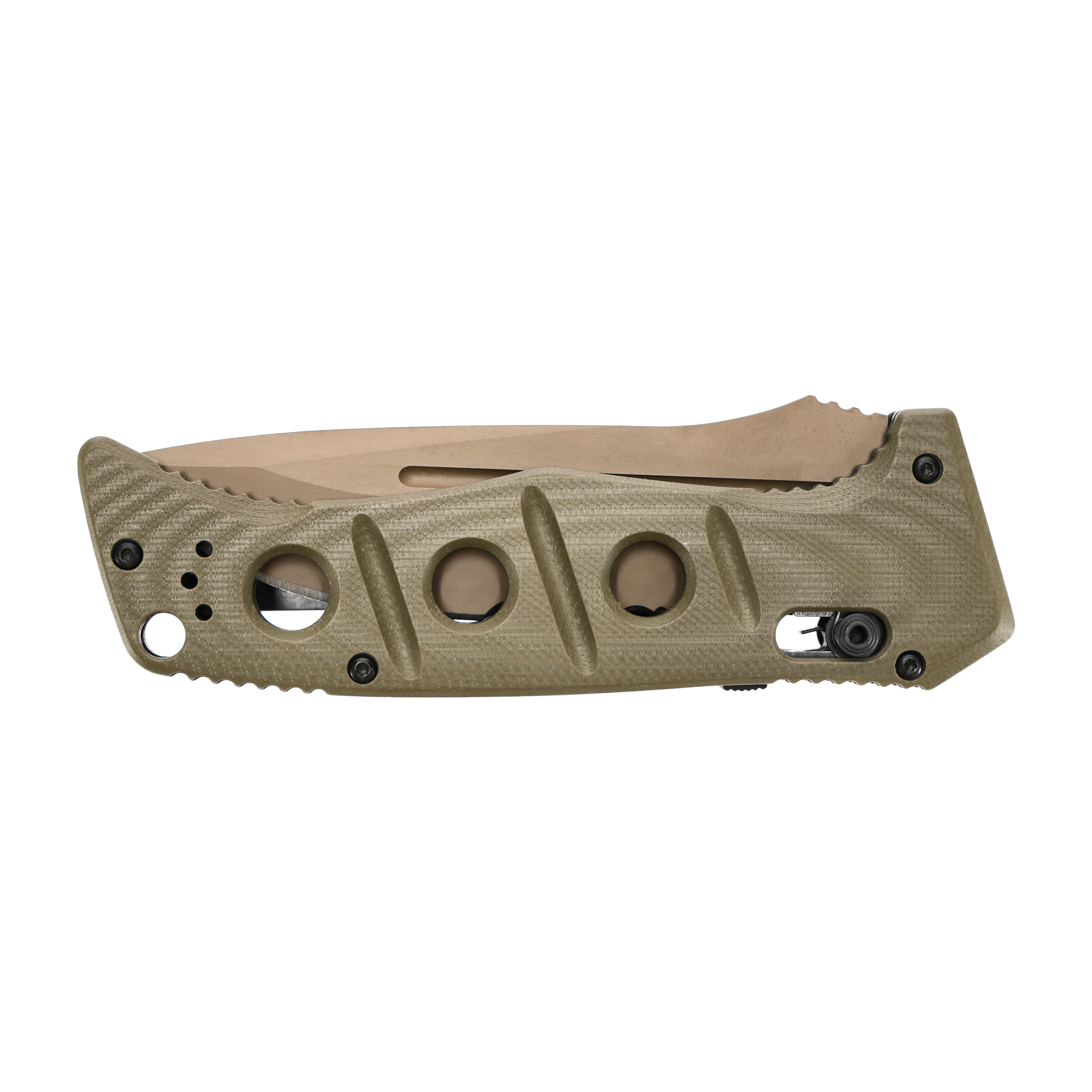 Benchmade 2750SFE-2 Auto Adamas to automatyczna wersja noża taktycznego Adamas, zaprojektowanego przez cenionego knifemakera Shane Siberta. Model z częściowo ząbkowaną głownią w kolorze Flat Dark Earth oraz okładzinami G10 o kolorze olive drab.