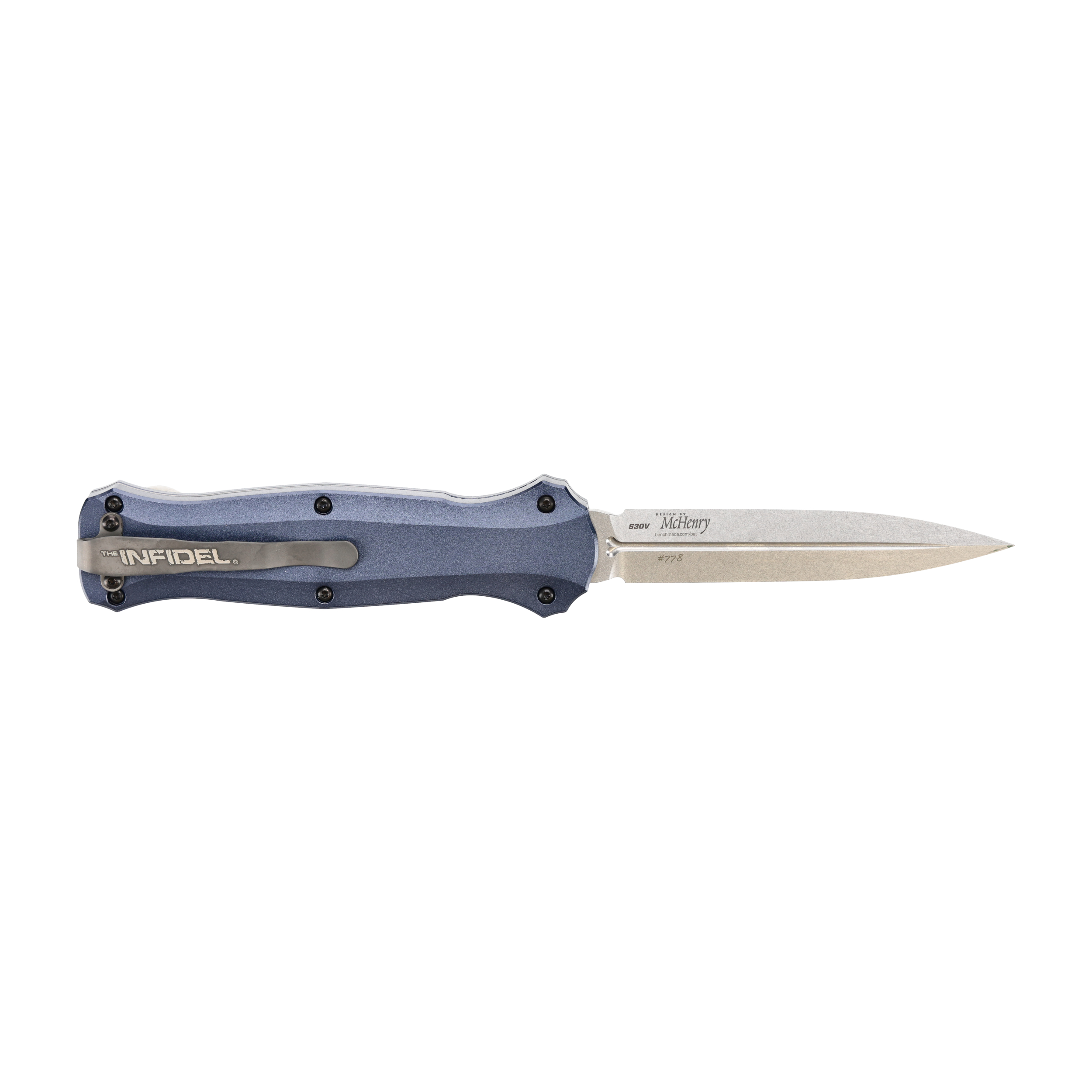 Benchmade Infidel 3300-2301 to automatyczny nóż taktyczny, wyposażony w głownię ze stali narzędziowej CPM-S30V, duży przycisk rozkładania oraz rękojeść w kolorze Crater Blue z frezowanego aluminium lotniczego. Model został wyposażony w ostrze ze stali wysokiej jakości i uzupełnia ofertę noży automatycznych z rodziny Infidel.