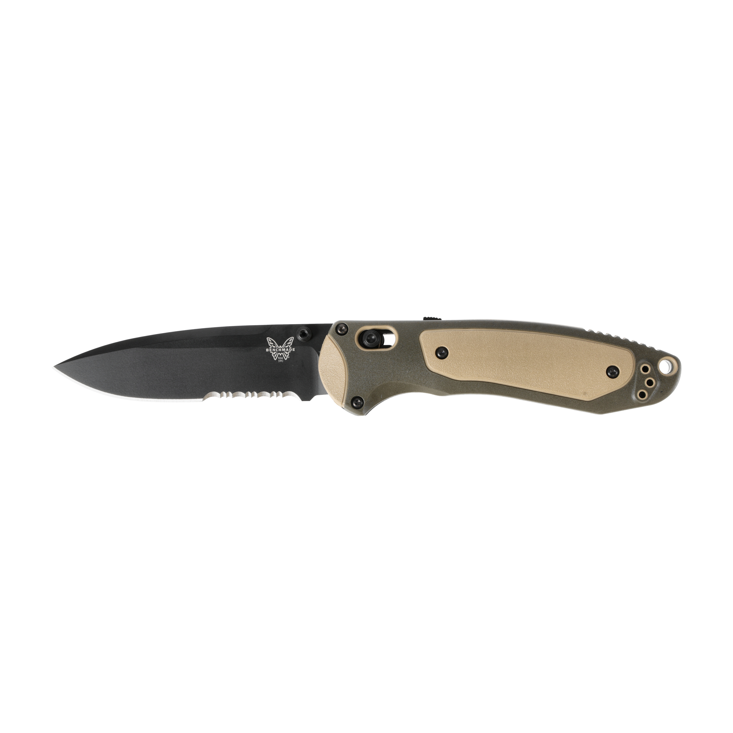 Benchmade 590SBK-1 Boost to uniwersalny nóż edc wyposażony w ostrze combo ze stali S30V, mechanizm wspomagania otwieranie głowni, niezawodną blokadę axis-lock oraz wzmacniane okładziny z tworzywa Versaflex.