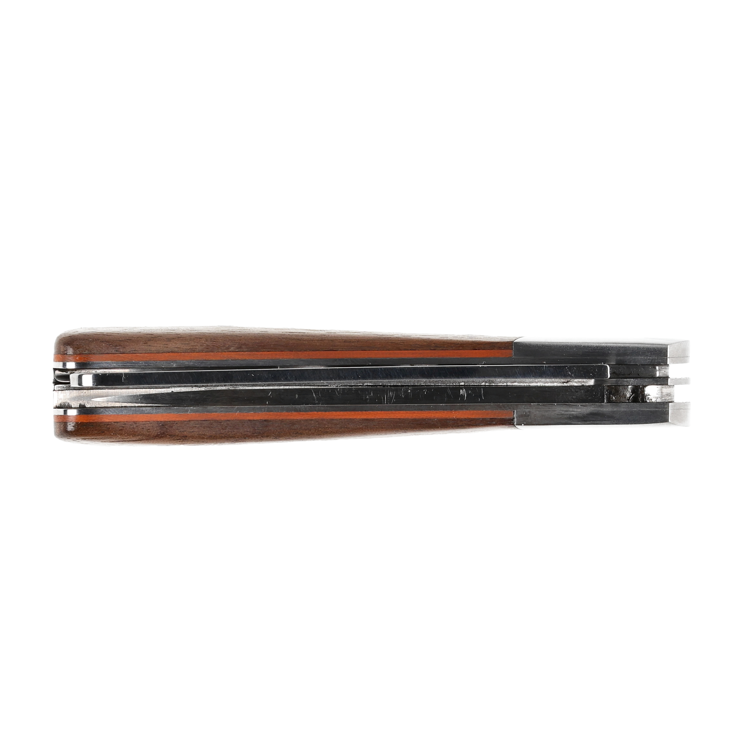 Okładziny rękojeści wykonano z drewna orzechowego i tworzywa G10 – kompozytu z włókna szklanego i syntetycznej żywicy, lekkiego i niepodatnego na uszkodzenia mechaniczne. Wygładzone krawędzie okładzin poprawiają pewność uchwytu i sprawiają, że nóż dobrze leży w dłoni.