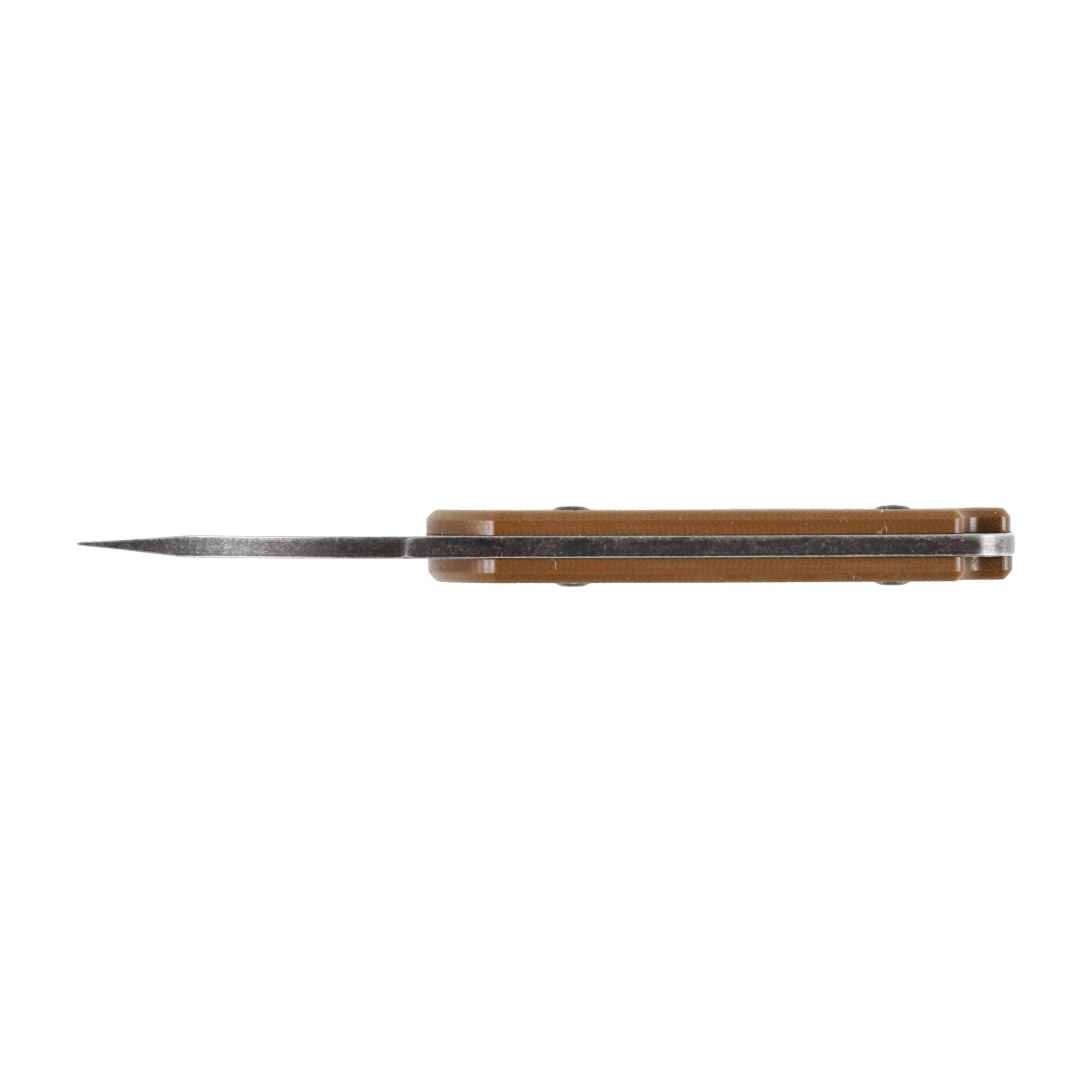 Smukła klinga o użytkowym profilu wharncliffe ma wykończenie stonewashed (kąpiel w kamieniach ściernych). Wytworzona powłoka dobrze maskuje drobne zarysowania powstałe podczas użytkowania i efektownie kontrastuje z kolorystykę okładzin.