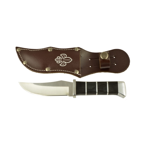 Nóż harcerski typu finka wykonany ze stali nierdzewnej. W komplecie znajduje się etui wykonane z materiału imitującego skórę.