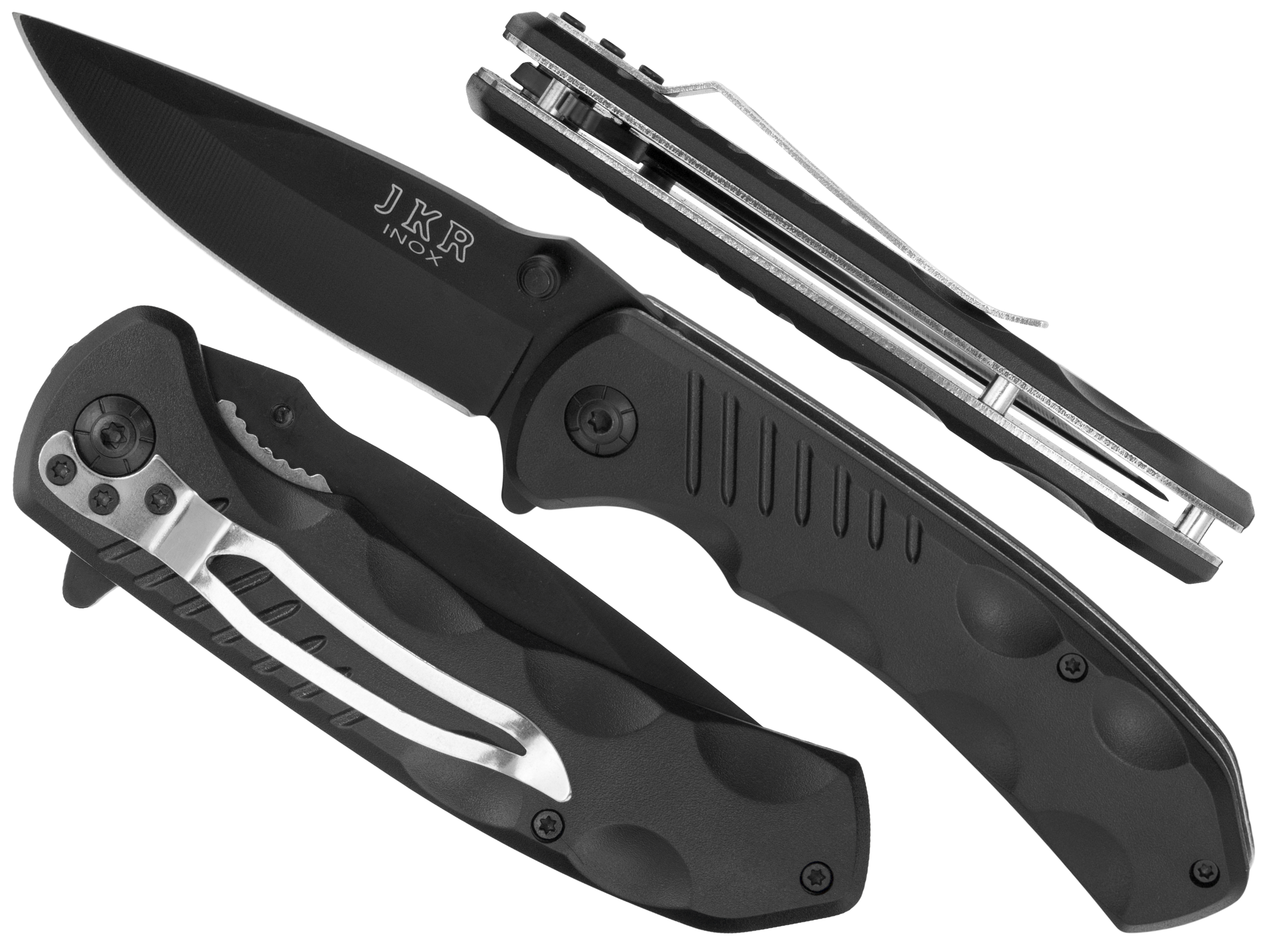 Mamy do zaoferowania fabrycznie nowy, wysokiej jakości nóż hiszpańskiej marki Joker znanej na całym świecie ze swoich doskonałych wyrobów. Jest to uniwersalny, składany nóż w całości wykonany z mocnej stali nierdzewnej. Rękojeść wykonana jest z wytrzymałego metalu o ciekawym wzornictwie z gumowanymi okładzinami w kolorze czarnym. Idealne rozwiązanie dla ludzi którzy pasjonują się czarną taktyką.. Nóż wyposażony jest w fliper który umożliwa szybkie i bezproblemowe otwarcie noża. Pewna i skuteczna blokada noża typu Liner Lock zapewnia niekontrolowane złożenie noża. Nóż posiada klips umożliwiający przypęcie do pasa czy też schowania do kieszeni.