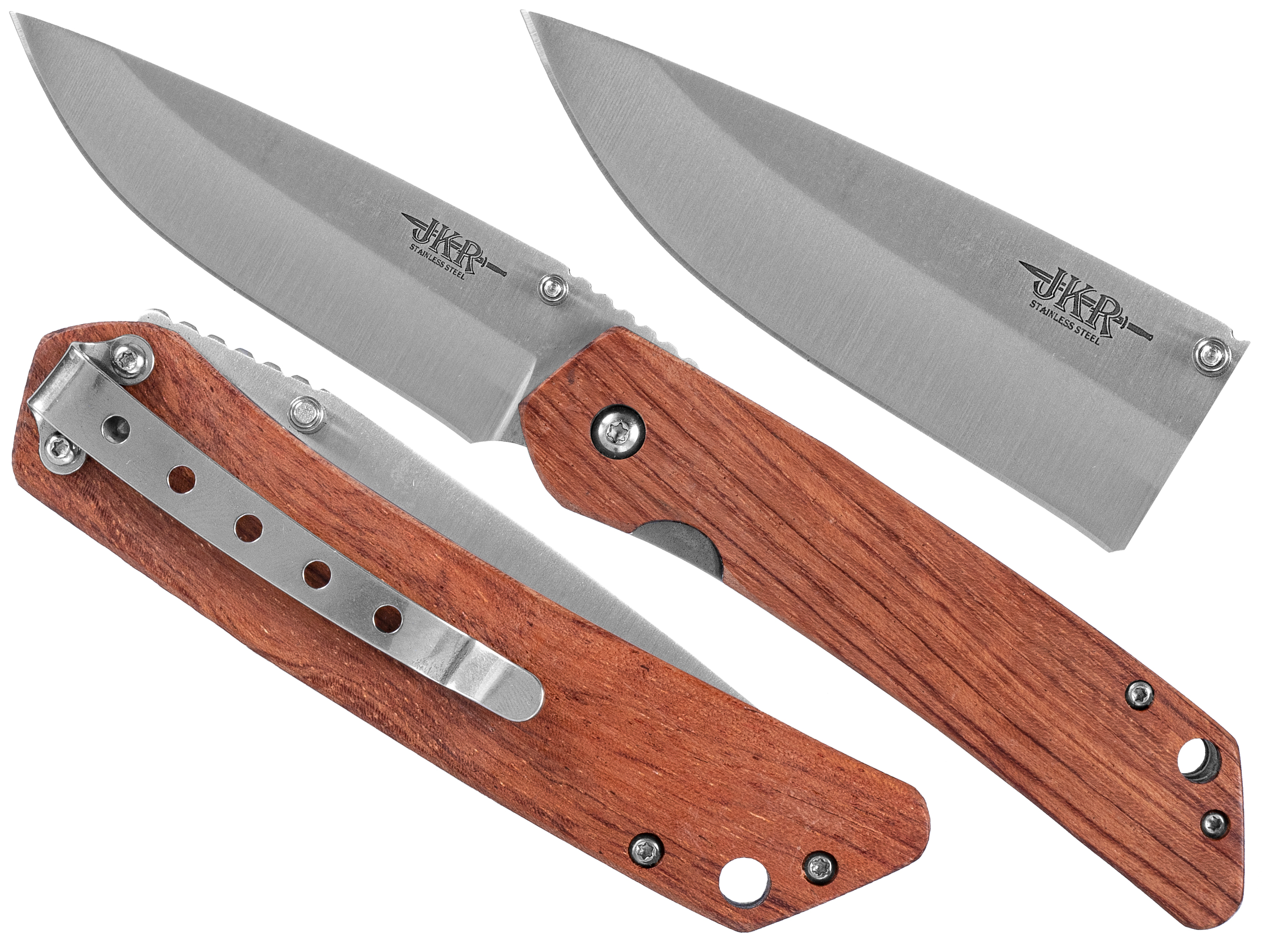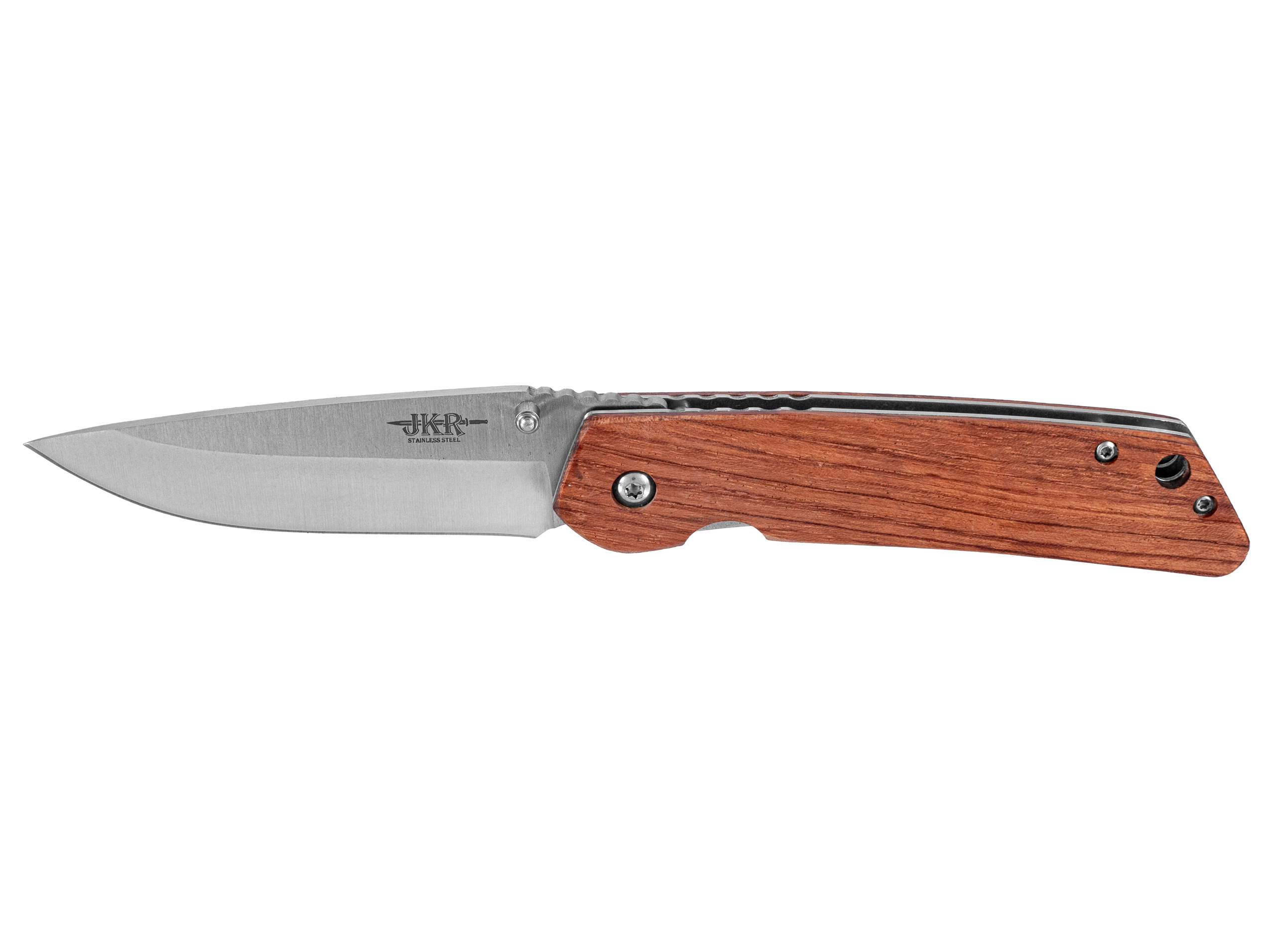Joker JKR-658 to myśliwski nóż składany, w którym zastosowano ostrze ze stali nierdzewnej Mova, sprawdzoną blokadę liner-lock oraz proste drewniane okładziny.