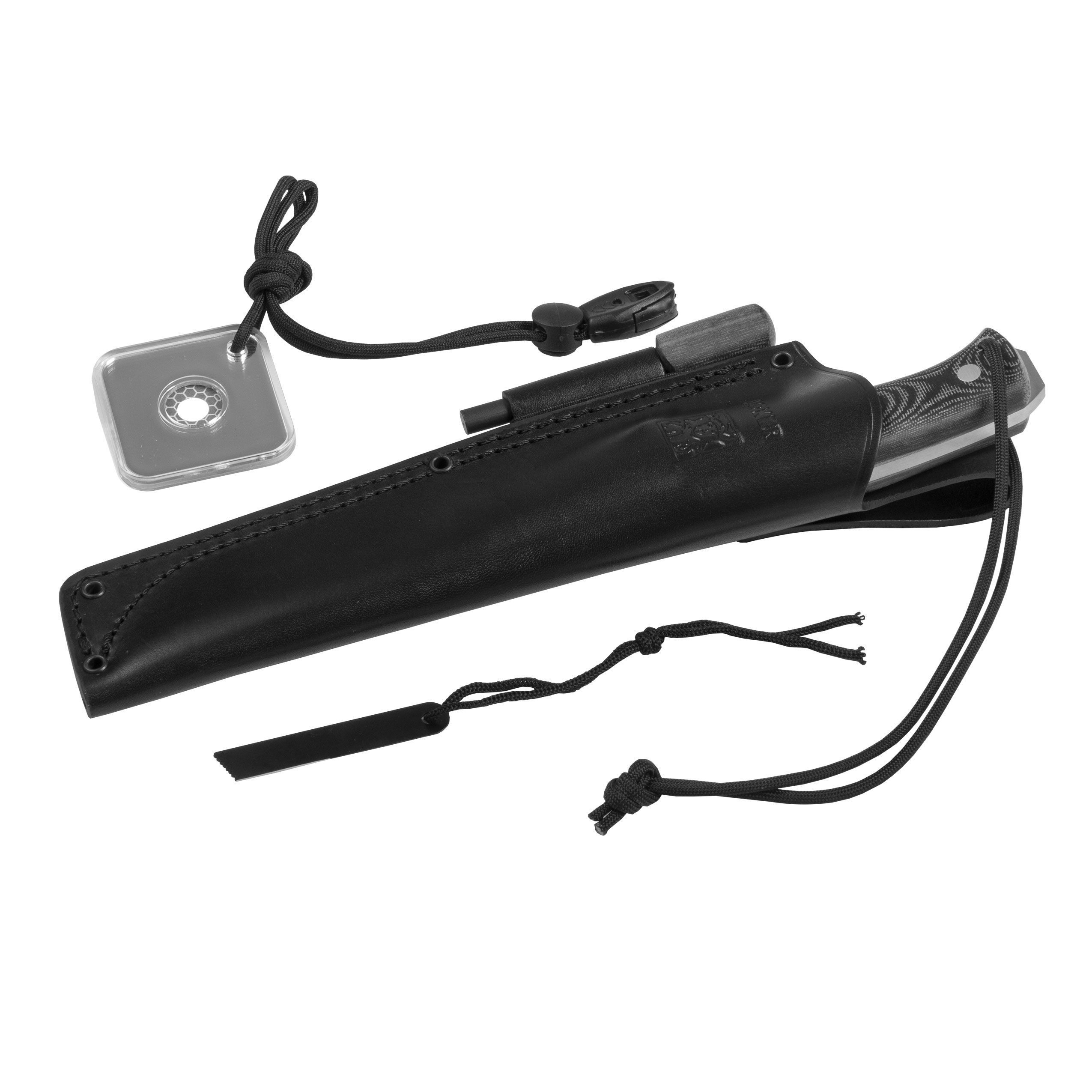 Do noża dołączona jest skórzana pochwa, ułatwiająca przenoszenie narzędzia, oraz krzesiwo, umieszczone w niewielkiej, naszytej na pochwie kieszonce. W zestawie znajduje się również 2-metrowa linka paracord 550, przydatna w różnych outdoorowych sytuacjach.