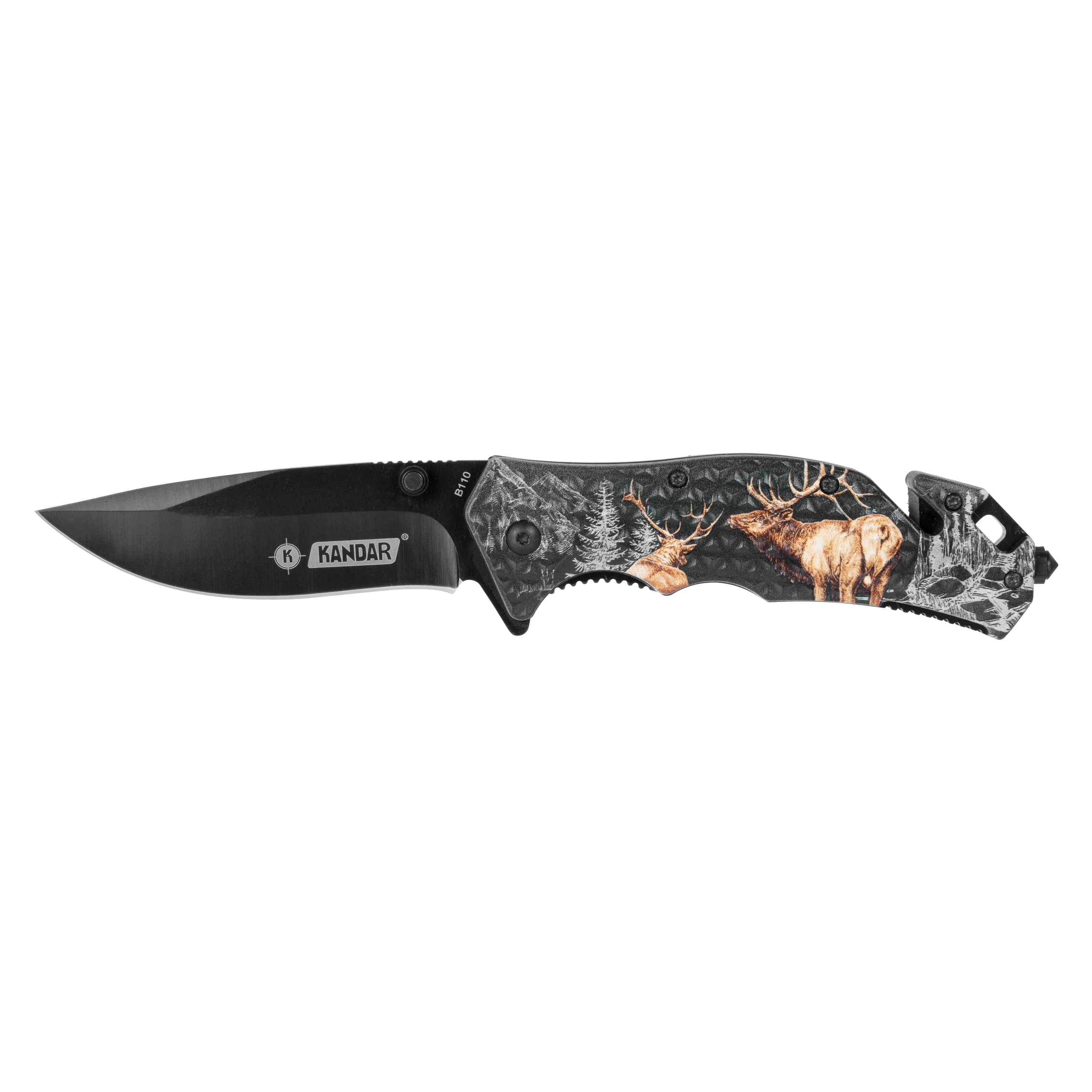 Kandar N379 to składany nóż edc, wyposażony w głownię ze stali nierdzewnej 440, profilowane okładziny z tworzywa sztucznego, ostrze do cięcia pasów bezpieczeństwa oraz awaryjny zbijak do szyb.
