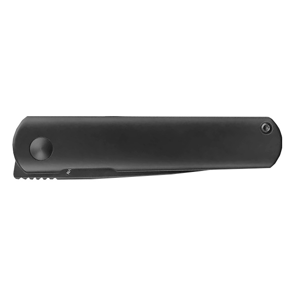 Proste, minimalistyczne okładziny wykonano przy użyciu precyzyjnych obrabiarek CNC, z lekkiego i niezwykle twardego tytanu w czarnym kolorze, zapewniając w ten sposób wysoką wytrzymałość oraz efektowny design noża.