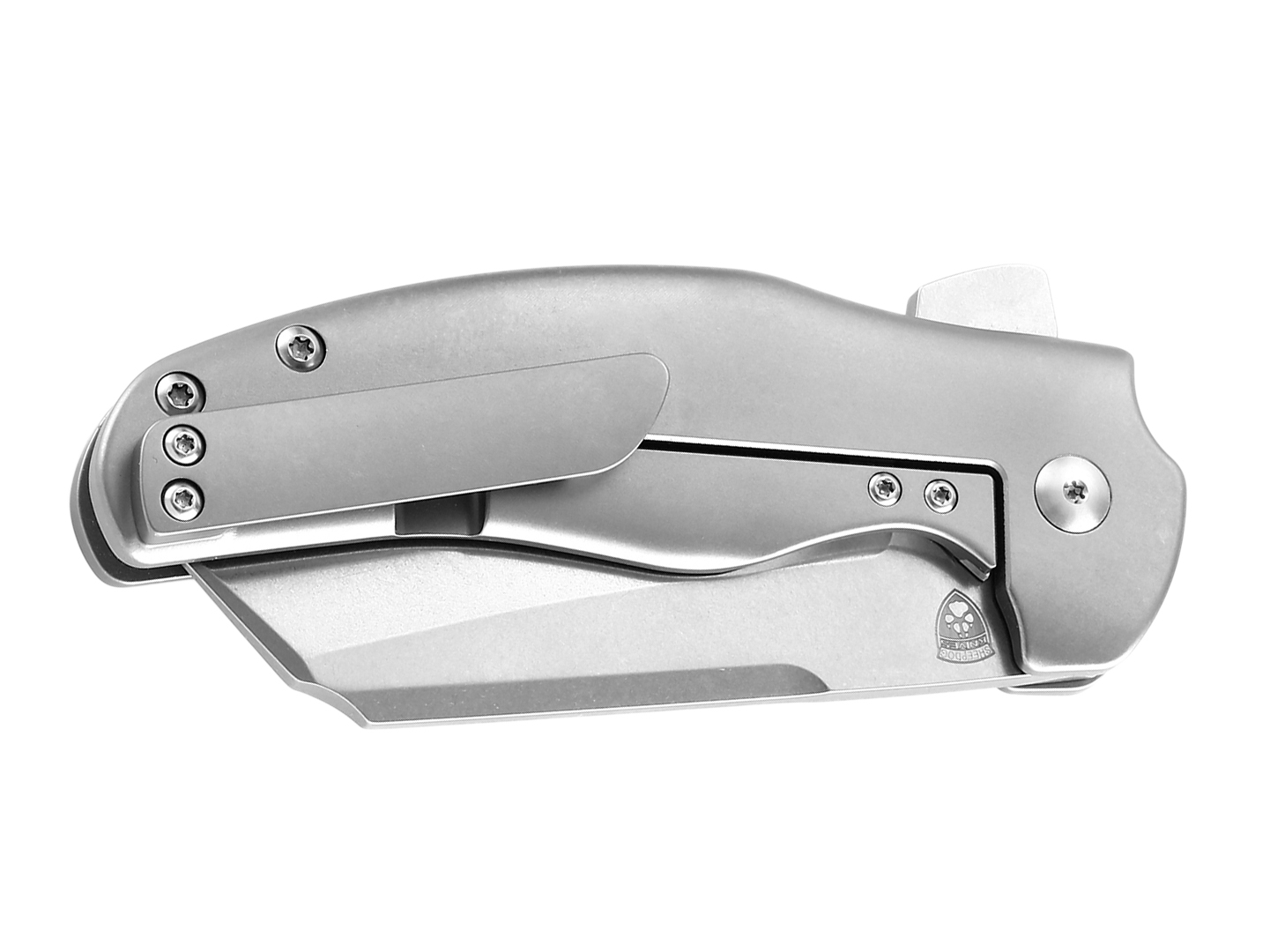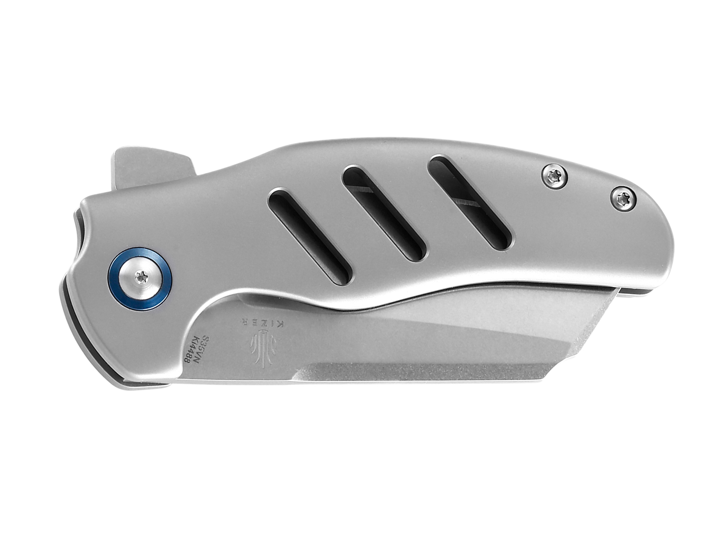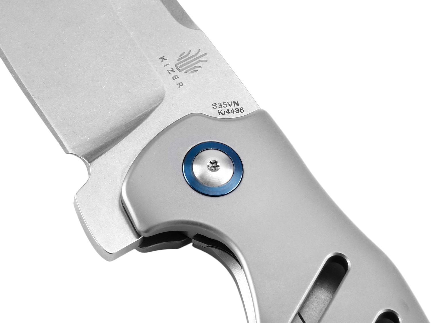 Smaczku nadają customowe śruby, niebieska podkładka śruby głównej oraz matowy tytanowy klips. W nożu zastosowano monolityczną blokadę frame-lock ze stalową wkładką wzmacniającą oraz mechanizm zapobiegający nadmiernemu wychyleniu ostrza.