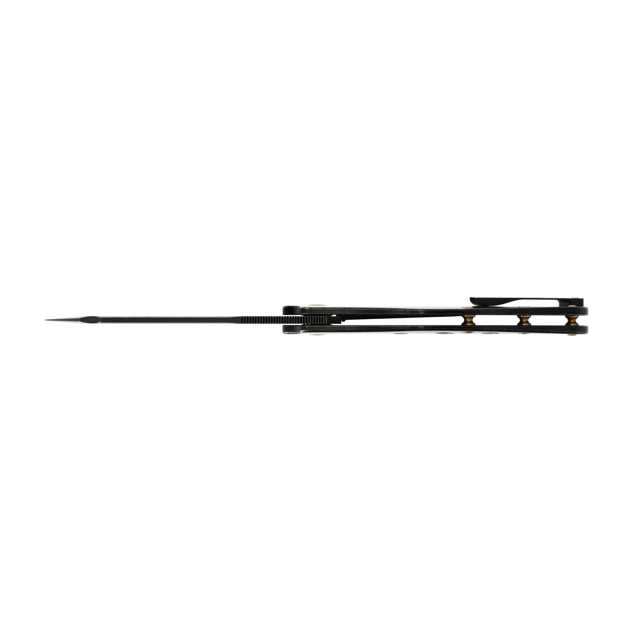 Charakterystyczna geometria i rozmiar ostrza, utrzymanie stylistyki w kolorze czarnym ze złotymi elementami i okładziny wykonane z tytanu tworzą kompozycję którą z pewnością docenią miłośnicy nietypowych rozwiązań.