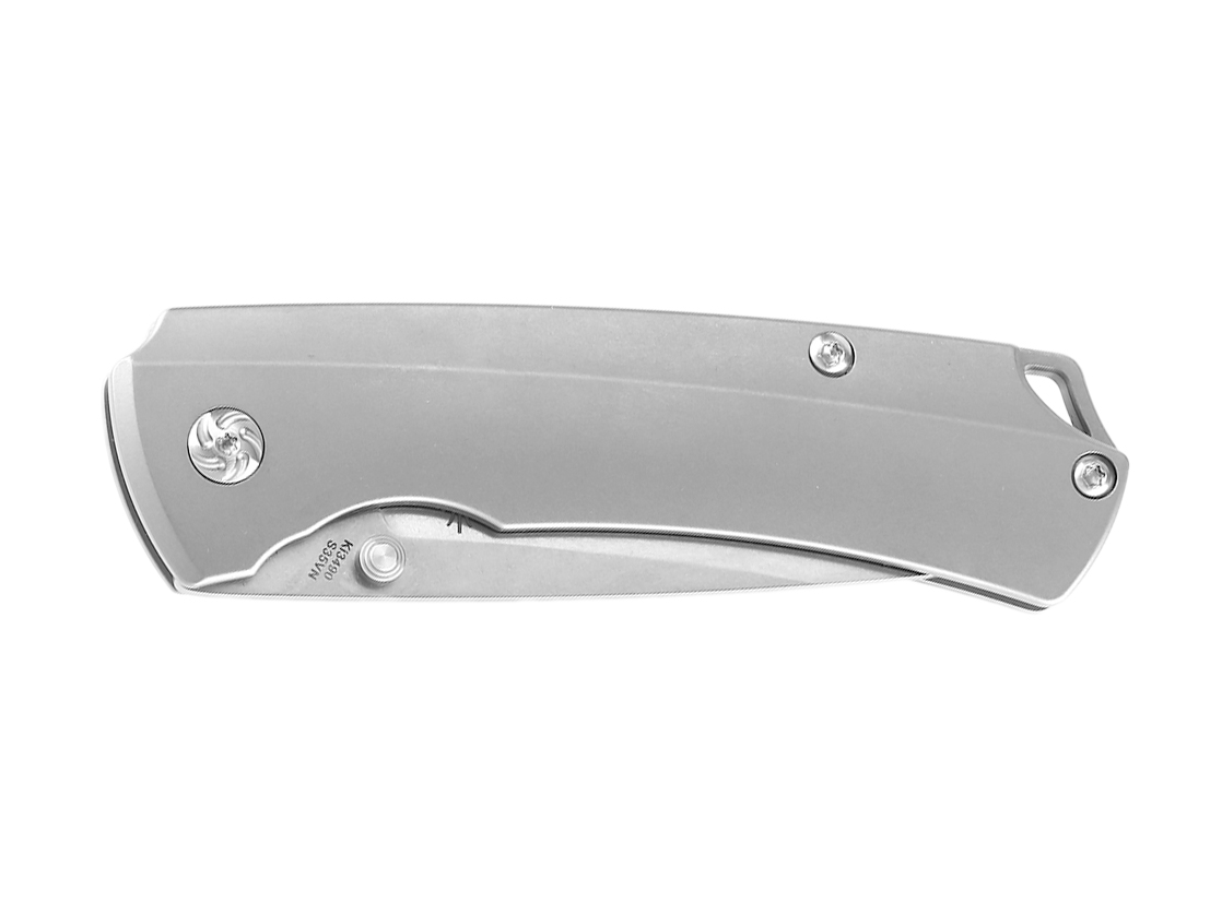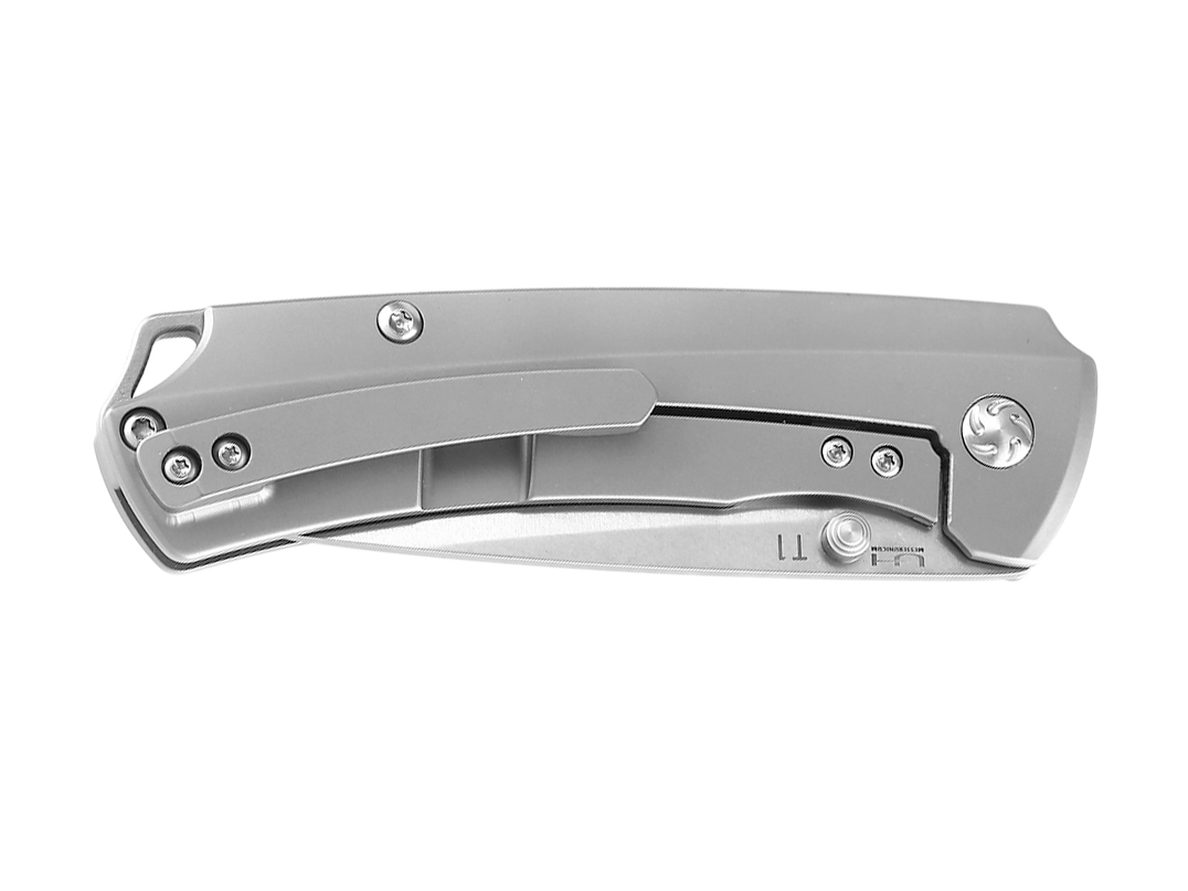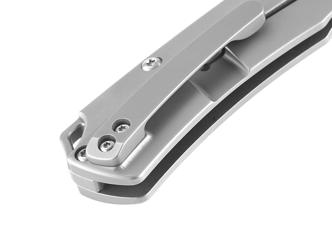 Profilowane okładziny wykonano przy użyciu precyzyjnych obrabiarek CNC, z lekkiego i niezwykle twardego tytanu, zapewniając w ten sposób wysoką wytrzymałość oraz efektowny design noża. W zakończeniu chwytu znajduję się zaczep, pozwalający na wplecenie linki lub ozdobnego oplotu.