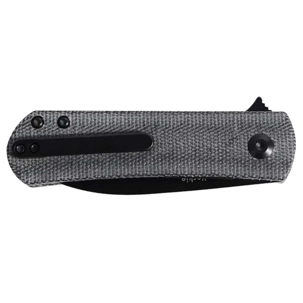 Minimalistyczne okładziny mają szorstką fakturę, która poprawia chwyt noża. Sztywność oraz wytrzymałość konstrukcji zapewnia stalowa wkładka wspierana aluminiowymi tulejami dystansowymi. Profilowany kształt chwytu, podcięcie na palce oraz drobne teksturowanie tworzywa powoduje, że nóż ściśle przylega do dłoni, nie przesuwa się i nie ślizga podczas pracy. Wygodne przenoszenie noża w kieszeni umożliwia sprężysty klips z tytanu (jednostronny).