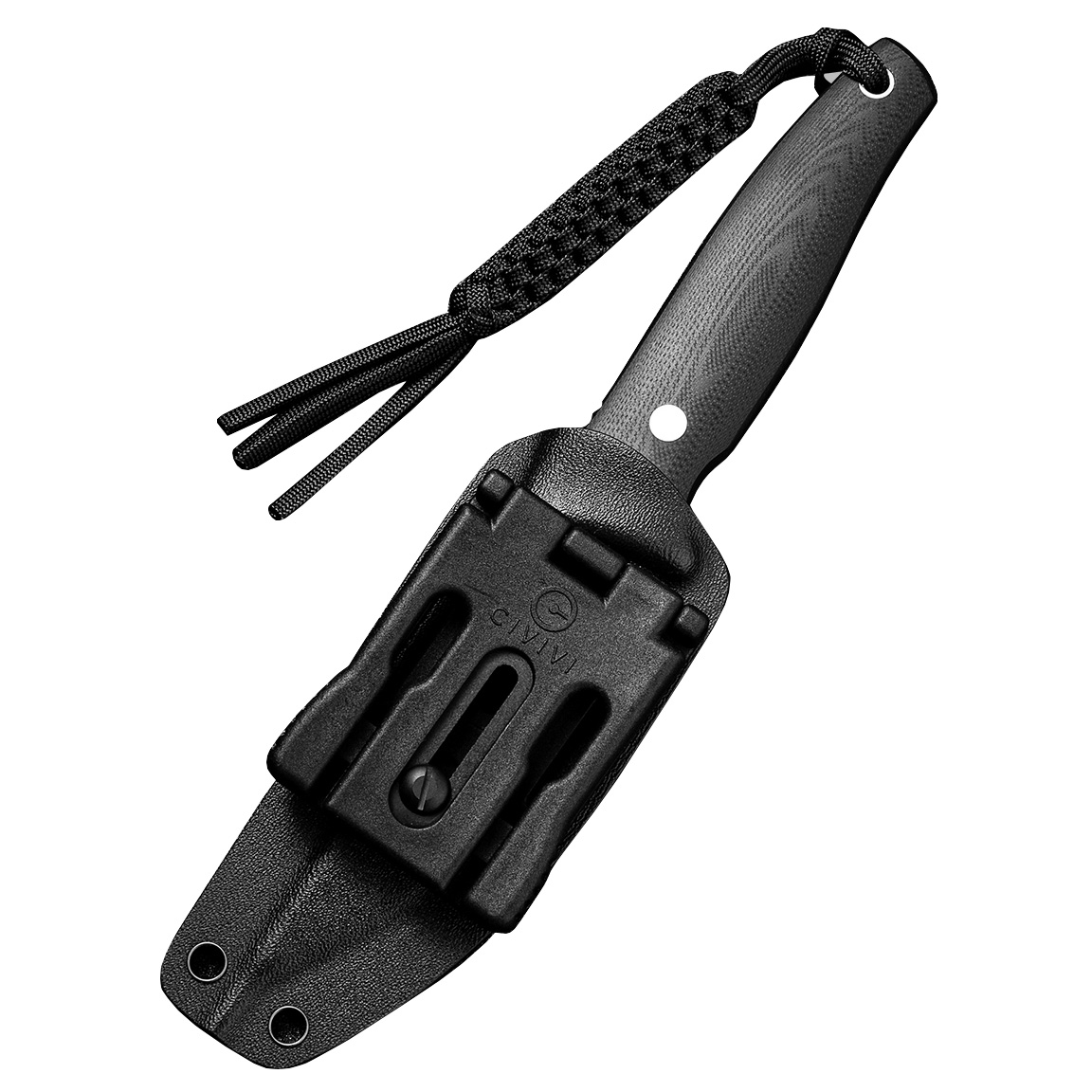 Wykonaną z czarnego kydexu pochwę wyposażono w klips T-Clip. Dzięki temu, po zamocowaniu do paska, można regulować jej położenie zarówno w płaszczyźnie poziomej, jak i pionowej, zależnie od indywidualnych preferencji.