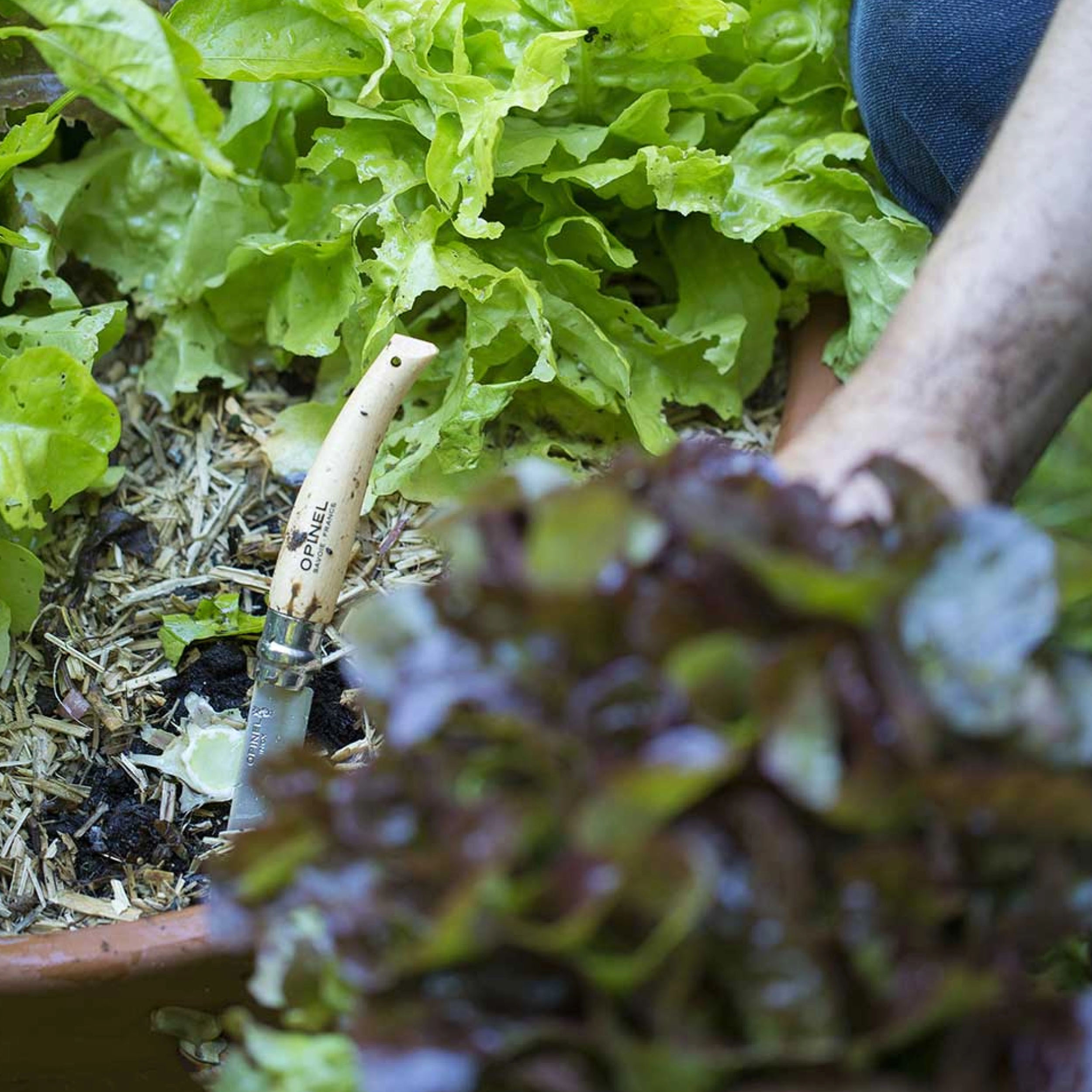 Nóż ogrodniczy Opinel 8 zapakowano w blister.