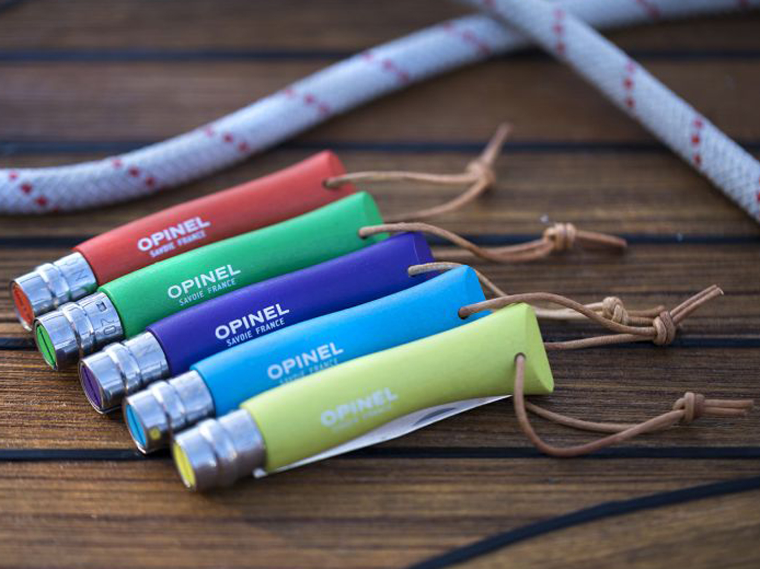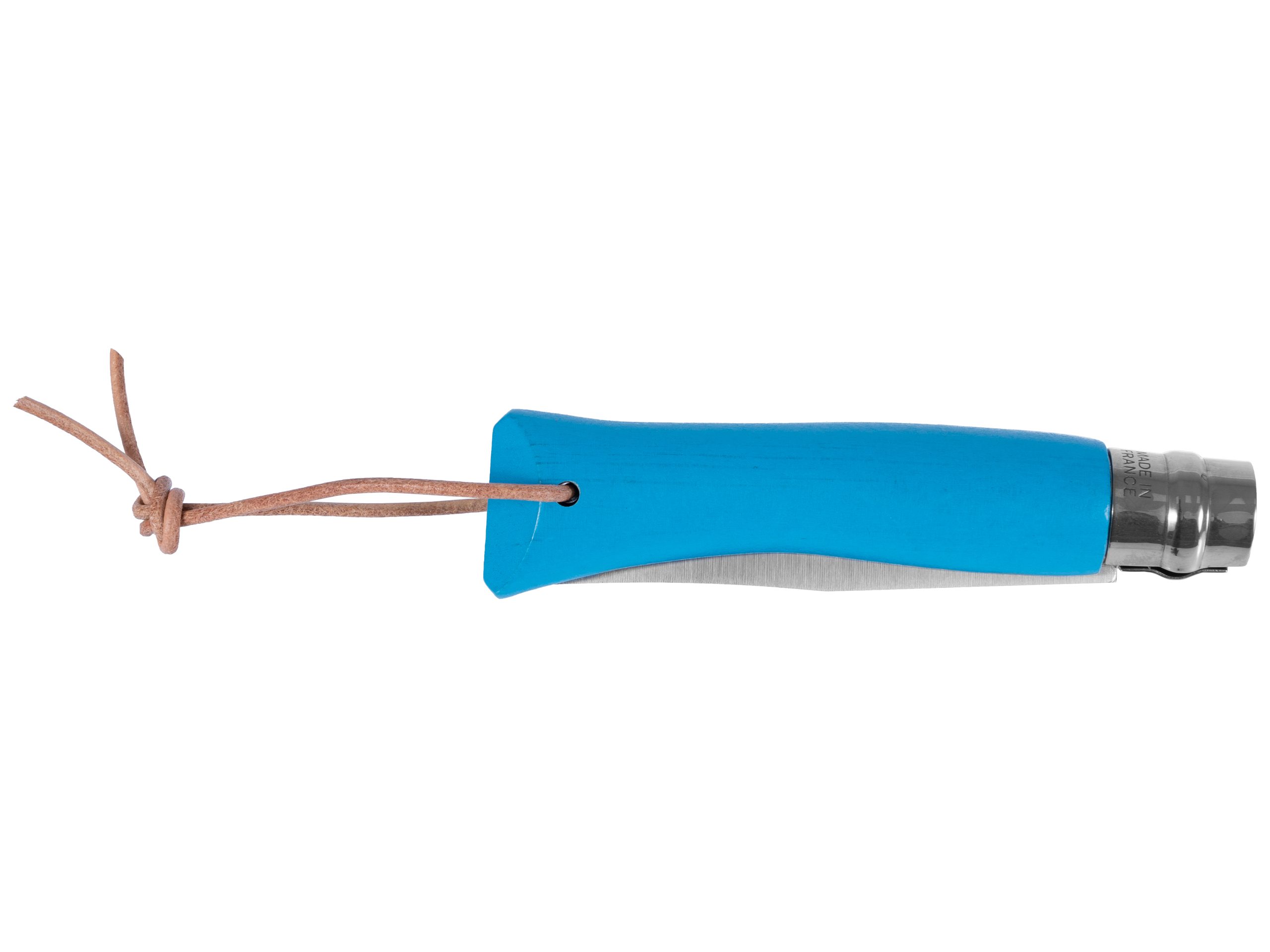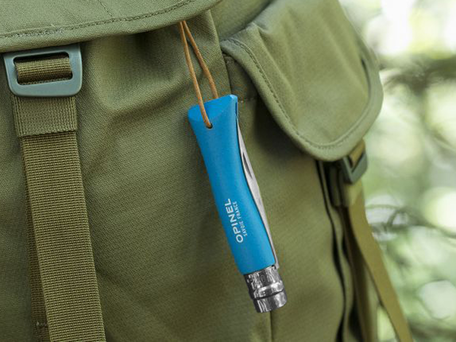 Opinel Colorama 07 inox niebieski z rzemieniem to składany nóż outdoorowy, wyposażony w ostrze ze stali nierdzewnej Sandvik 12C27M, blokadę Virobloc, oraz drewnianą rękojeść z rzemieniem do mocowania.