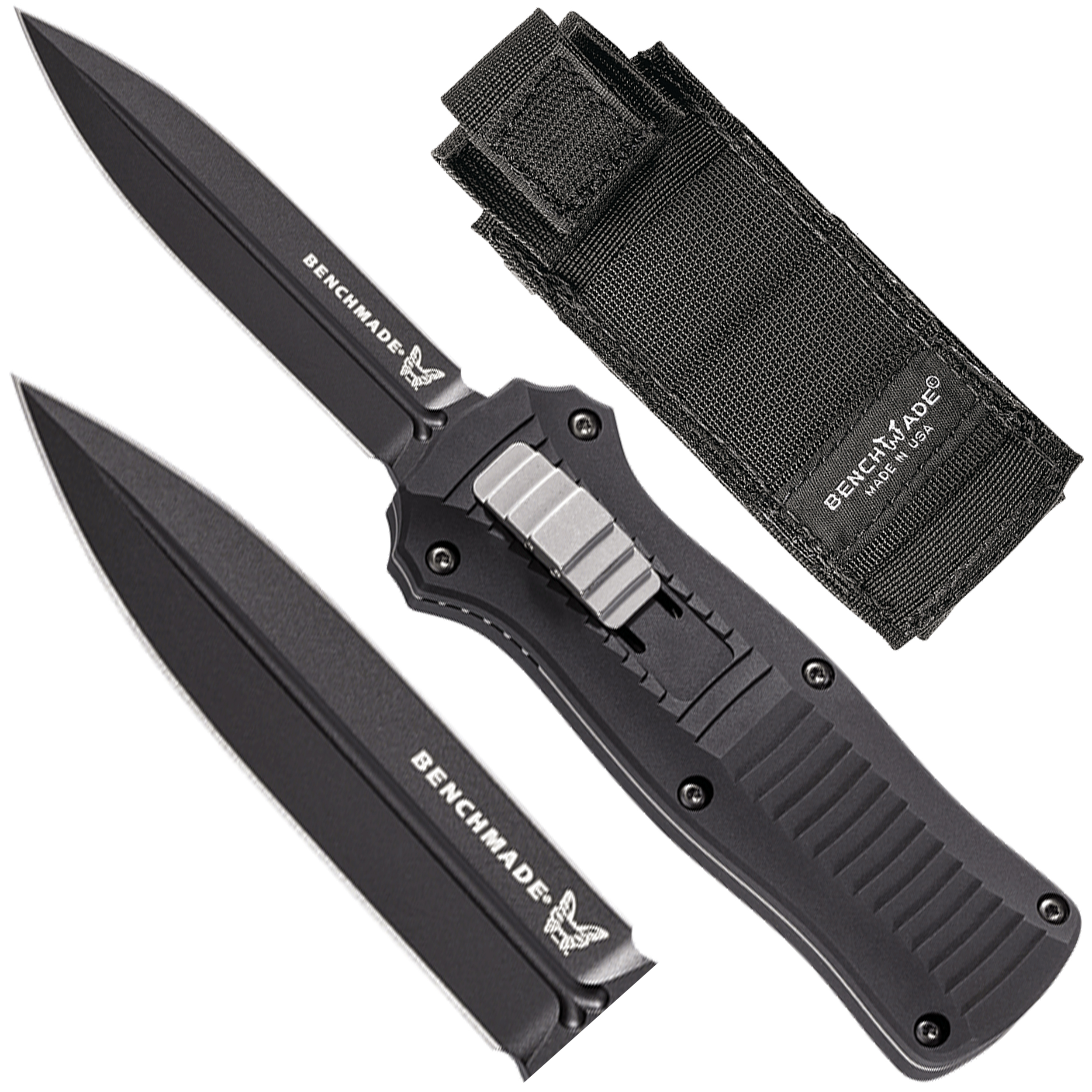 Benchmade Infidel 3350BK ma wysoko osadzony klips kompatybilny z systemem Molle (z możliwością przełożenia na drugą stronę) ułatwiający dyskretne przenoszenie noża w kieszeni oraz mocowanie na pasie lub plecaku. W komplecie znajduje się także nylonowe etui zamykane na rzep.