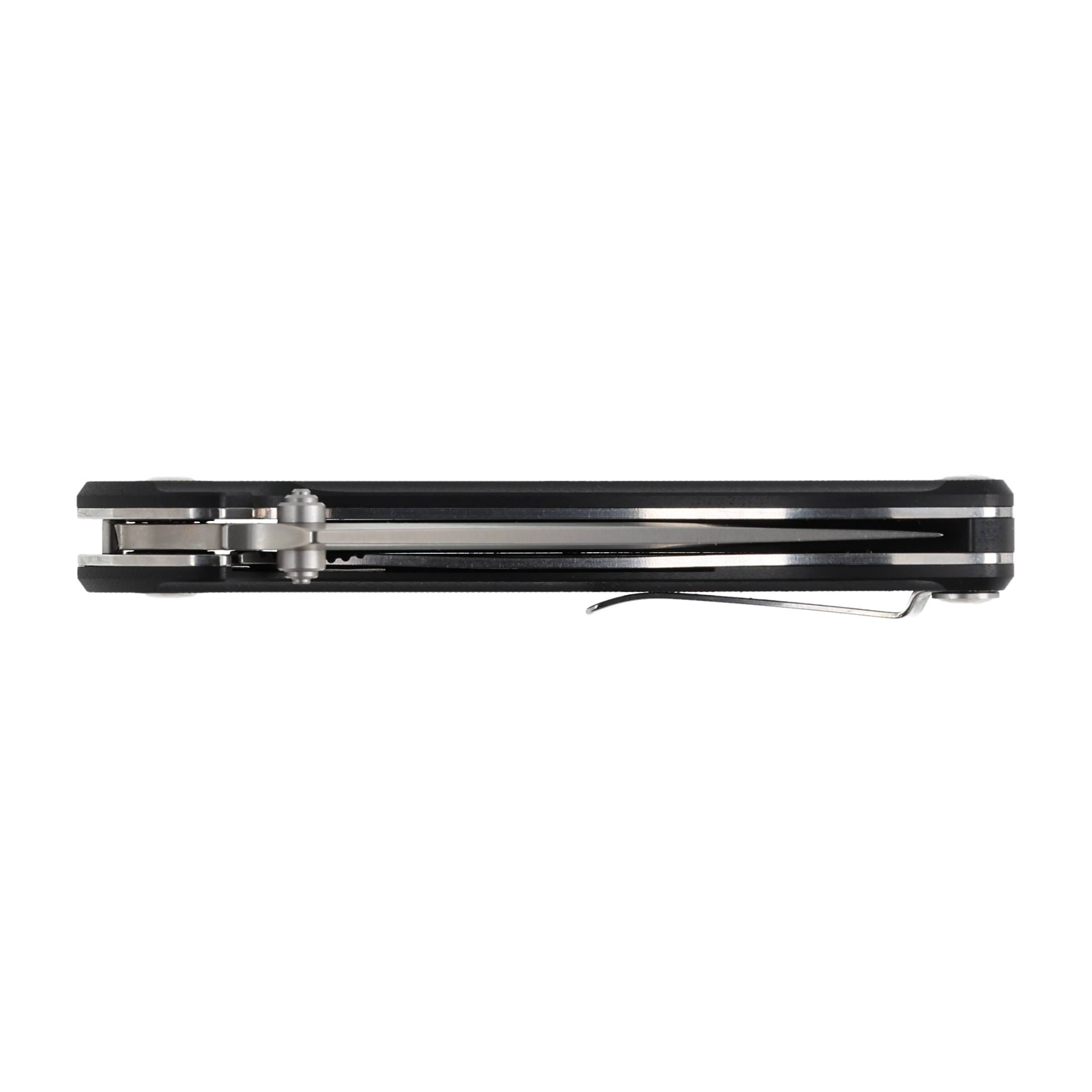 Klingę można rozkładać jedną ręką za pomocą obustronnego kołka, co ułatwia wygodną obsługę osobom prawo i leworęcznym. Na osi głowni znajdują się łożyska kulkowe, zapewniające płynną i lekką pracę ostrza.
