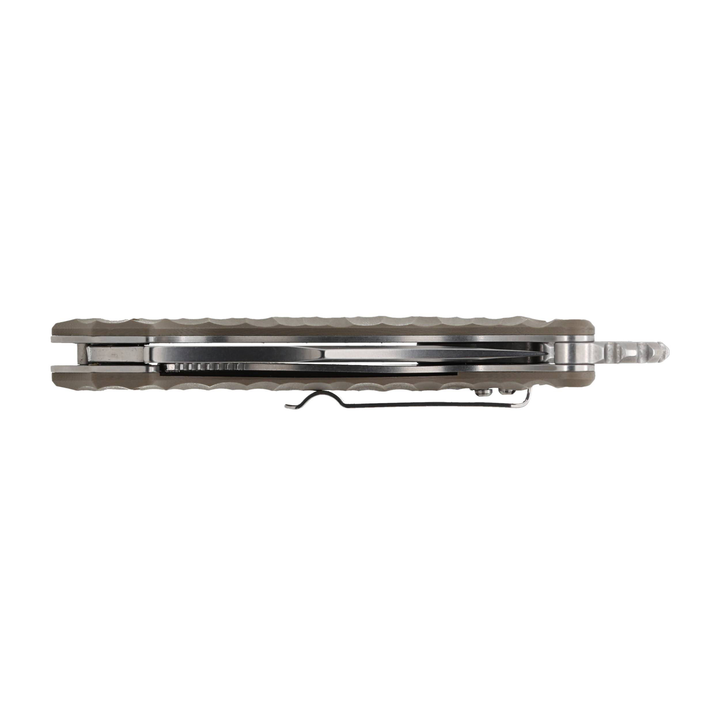Klingę można rozkładać jedną ręką za pomocą flippera, co ułatwia wygodną obsługę osobom prawo i leworęcznym. Na osi głowni znajdują się łożyska kulkowe, zapewniające płynną i dynamiczną pracę ostrza.
