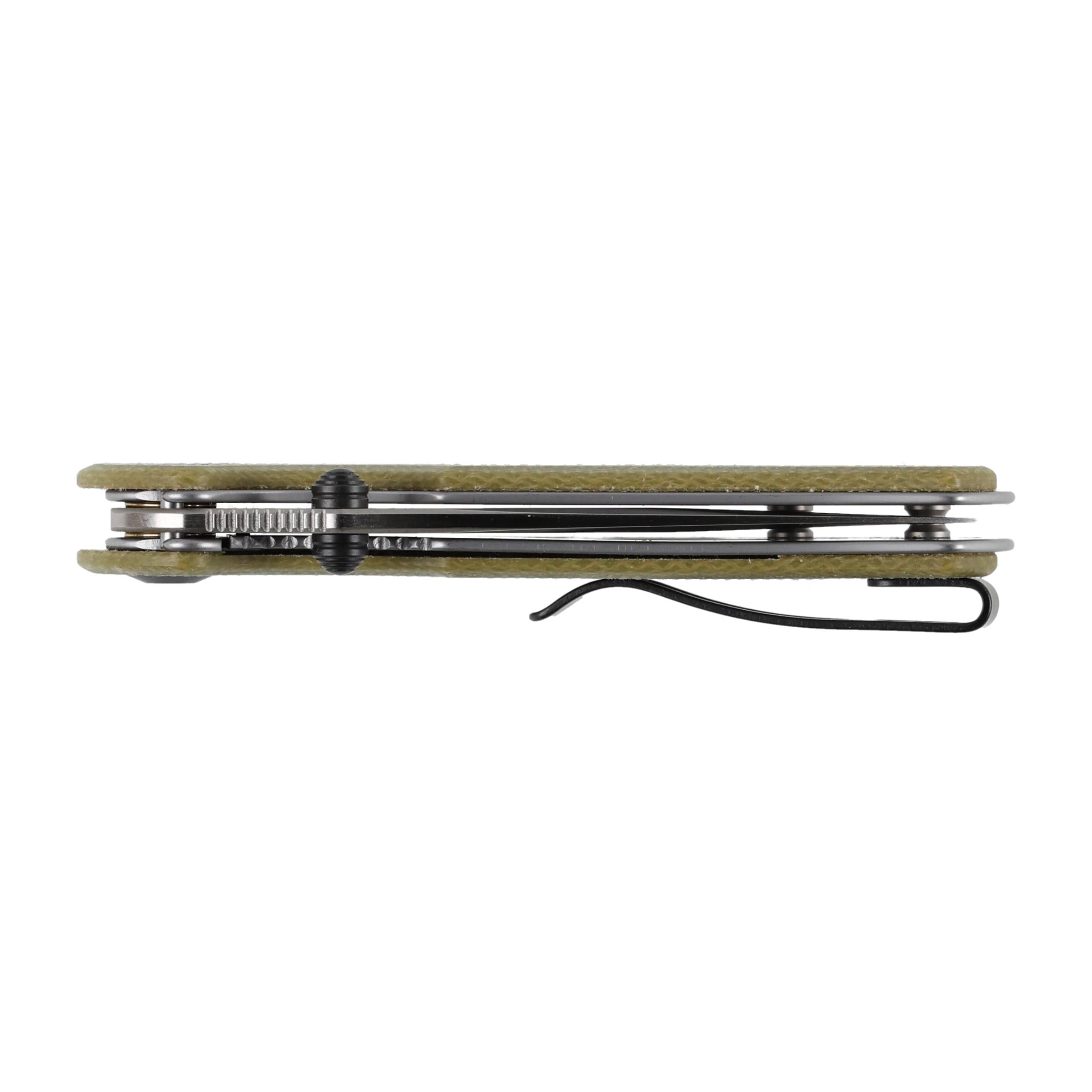 Okładziny rękojeści wykonano z oliwkowej Micarty – kompozytu powstałego z połączenia płótna prasowanego pod ciśnieniem z syntetyczną żywicą, lekkiego i niepodatnego na uszkodzenia mechaniczne. Wygładzone krawędzie okładzin poprawiają pewność uchwytu i sprawiają, że nóż dobrze leży w dłoniach.