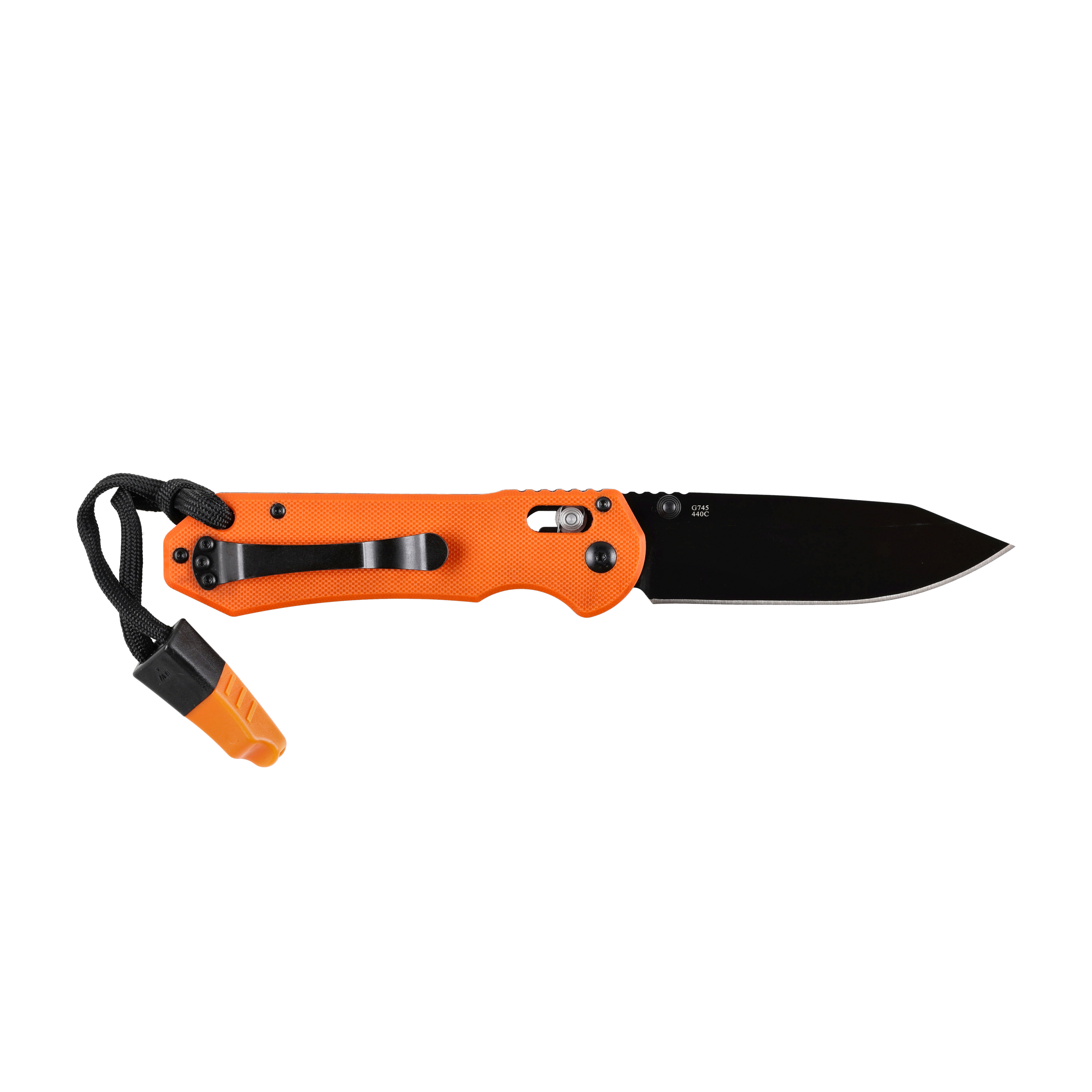 Ganzo G7453-OR-WS z gwizdkiem to poręczny nóż składany, w którym zastosowano głownię ze stali nierdzewnej 440C, sprawdzoną blokadą G-lock, obustronny kołek umożliwiający błyskawiczne rozłożenie ostrza jedną ręką oraz smyczkę z gwizdkiem sygnalizacyjnym.