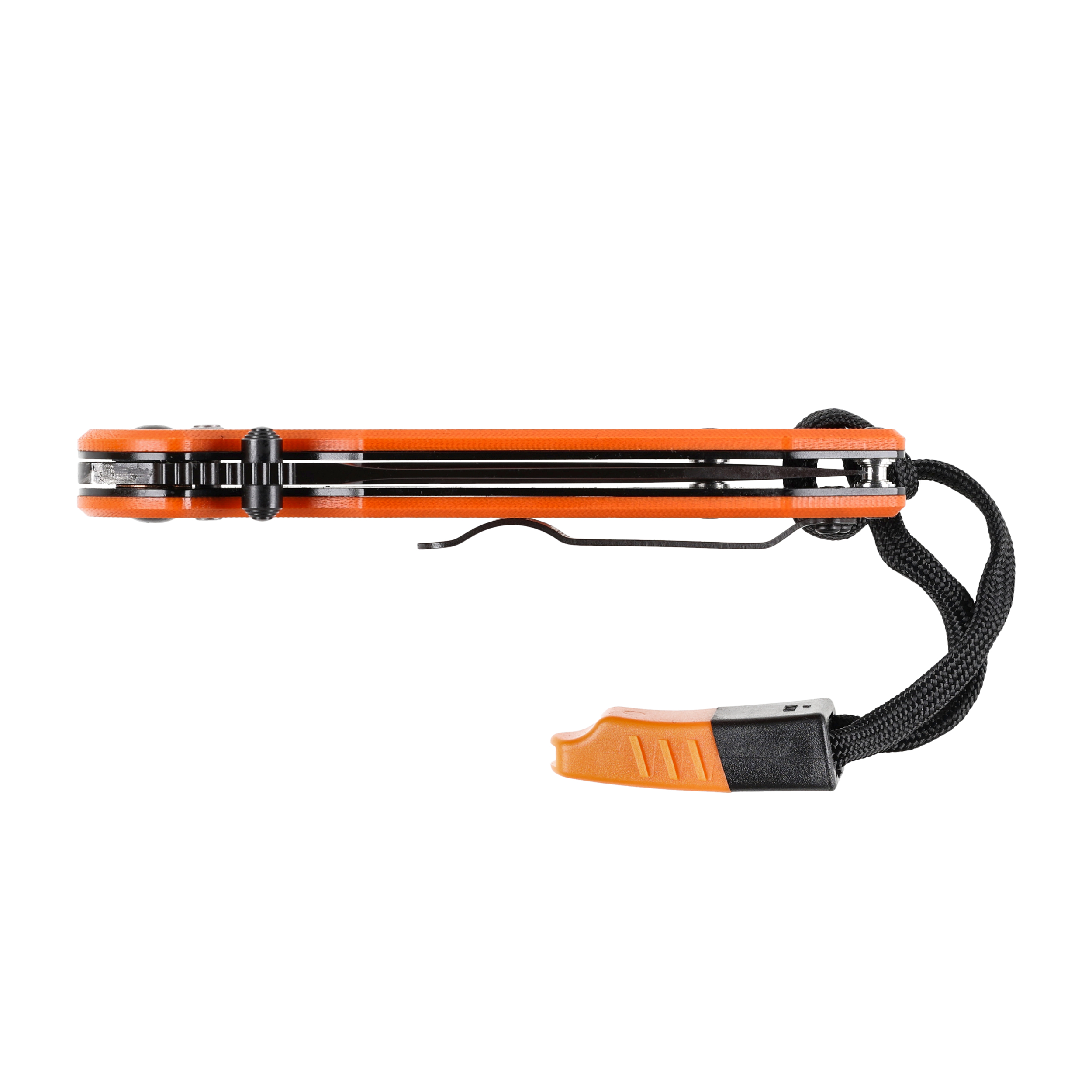 Wygodne przenoszenie noża w kieszeni, na pasku lub przy plecaku zapewnia sprężysty stalowy klips (tip up) z opcją przełożenia na lewą stronę. Outdoorowy charakter noża podkreśla smyczka z paracordu wzbogacona gwizdkiem sygnalizacyjnym o dużej głośności.