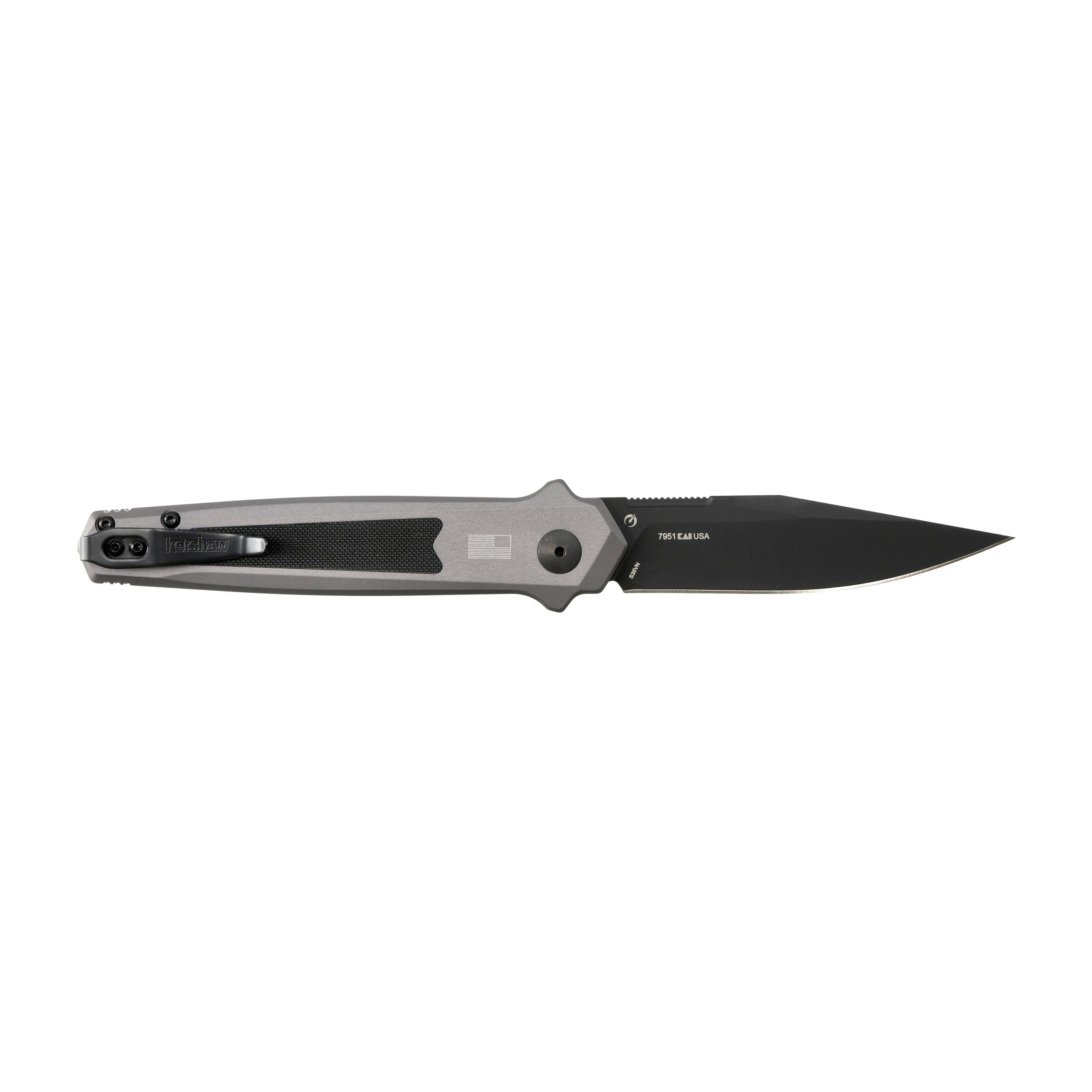 Smukła klinga o symetrycznym profilu clip-point ma czarne matowe wykończenie Cerakote, które podkreśla taktyczny styl noża i efektownie kontrastuje z szarą kolorystykę okładzin. Dzięki zastosowaniu ostrego sztychu, wklęsłego szlifu oraz krawędzi tnącej o łagodnie zaokrąglonej linii, nóż z łatwością penetruje oraz ma wspaniałe właściwości tnące. Grubość klingi w najszerszym miejscu wynosi 3 mm, co stanowi kompromis pomiędzy wytrzymałością i funkcjonalnością noża w codziennej pracy.