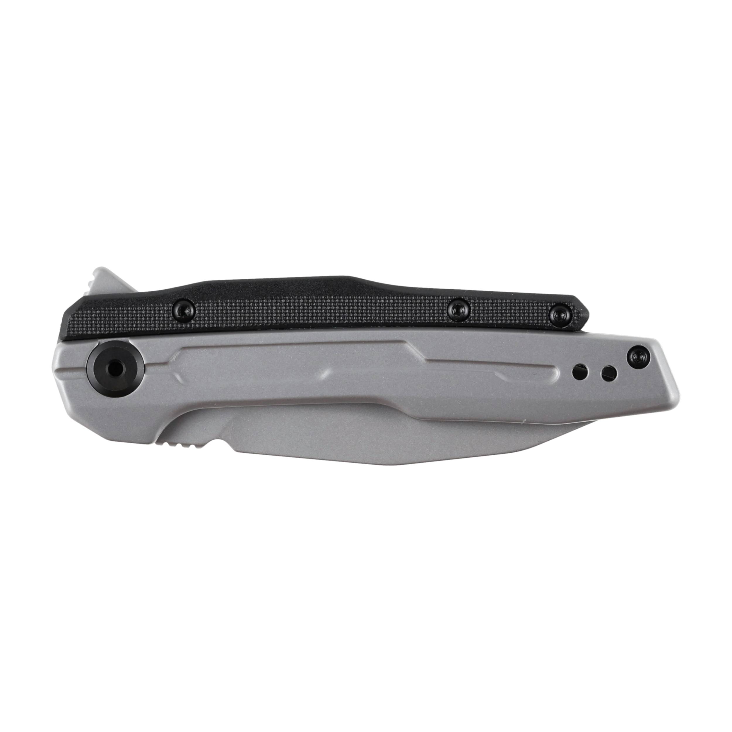 Głownia zostaje zabezpieczona przez wysoce wytrzymałą blokadę typu frame lock. Ze względu na prostotę konstrukcji oraz w pełne zastosowanie stali charakteryzuje się ona wysoką trwałością, oraz gwarantuje wysokie bezpieczeństwo. Do otwarcia noża został przewidziany teksturowany flipper, co umożliwia wygodną obsługę dowolną dłonią. Zastosowany klips typu deep carry umożliwia dyskretne przenoszenie noża poniżej linii kieszeni.