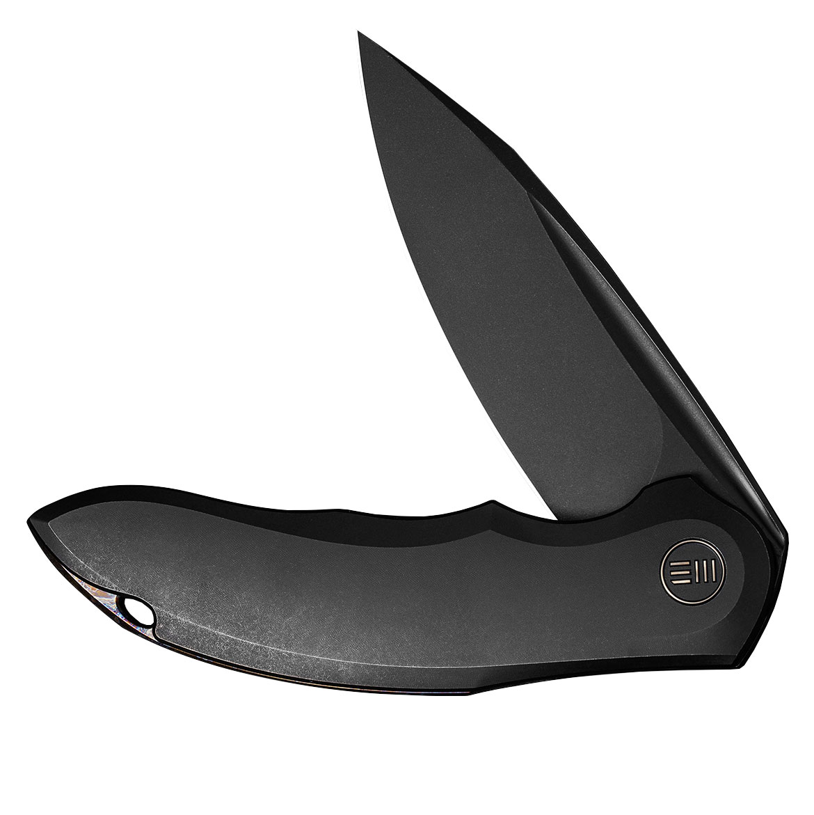 Głownię WE Makani wykuto ze stali CPM-20CV, zapewniającej znakomitą trwałość i odporność na korozję. Klingę typu Drop Point, zahartowaną do 58-60 HRC i wykończoną metodą Black Stonewash, otwiera się za pomocą flippera. Rękojeść wykonano z barwionego na czarno tytanu. Całość blokuje sprawdzony mechanizm Frame Lock.