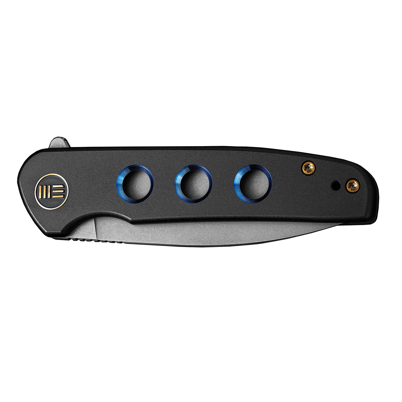 Klingę WE Shakan wykuto ze stali CPM-20CV, zapewniającej znakomitą trwałość i odporność na korozję. Wszechstronną głownię typu Drop Point, zahartowaną do 59-61 HRC, otwieraną za pomocą flippera, wykończono metodą Stonewash. W wykonanej z tytanu rękojeści nawiercona otwory. Całość blokuje sprawdzony mechanizm Frame Lock.