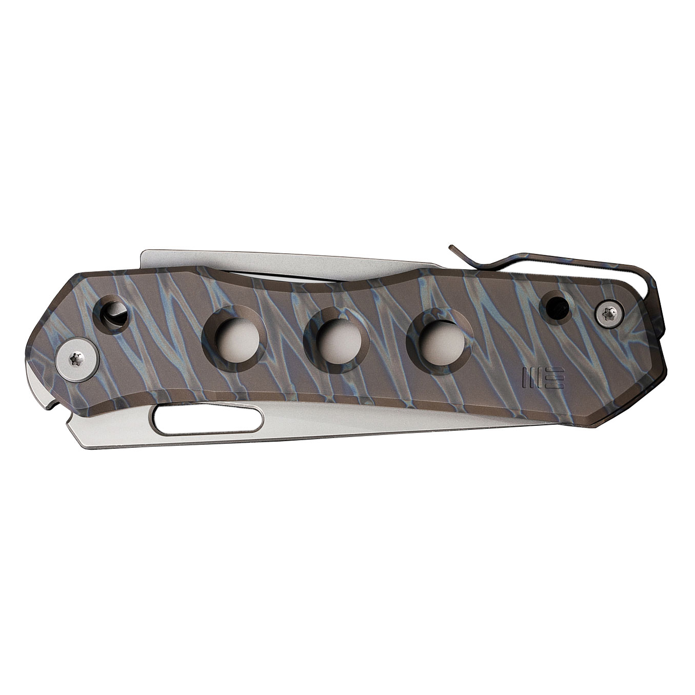 Dzięki obustronnemu tytanowemu klipsowi nóż można wygodnie przenosić w kieszeni spodni, kurtki lub plecaka.