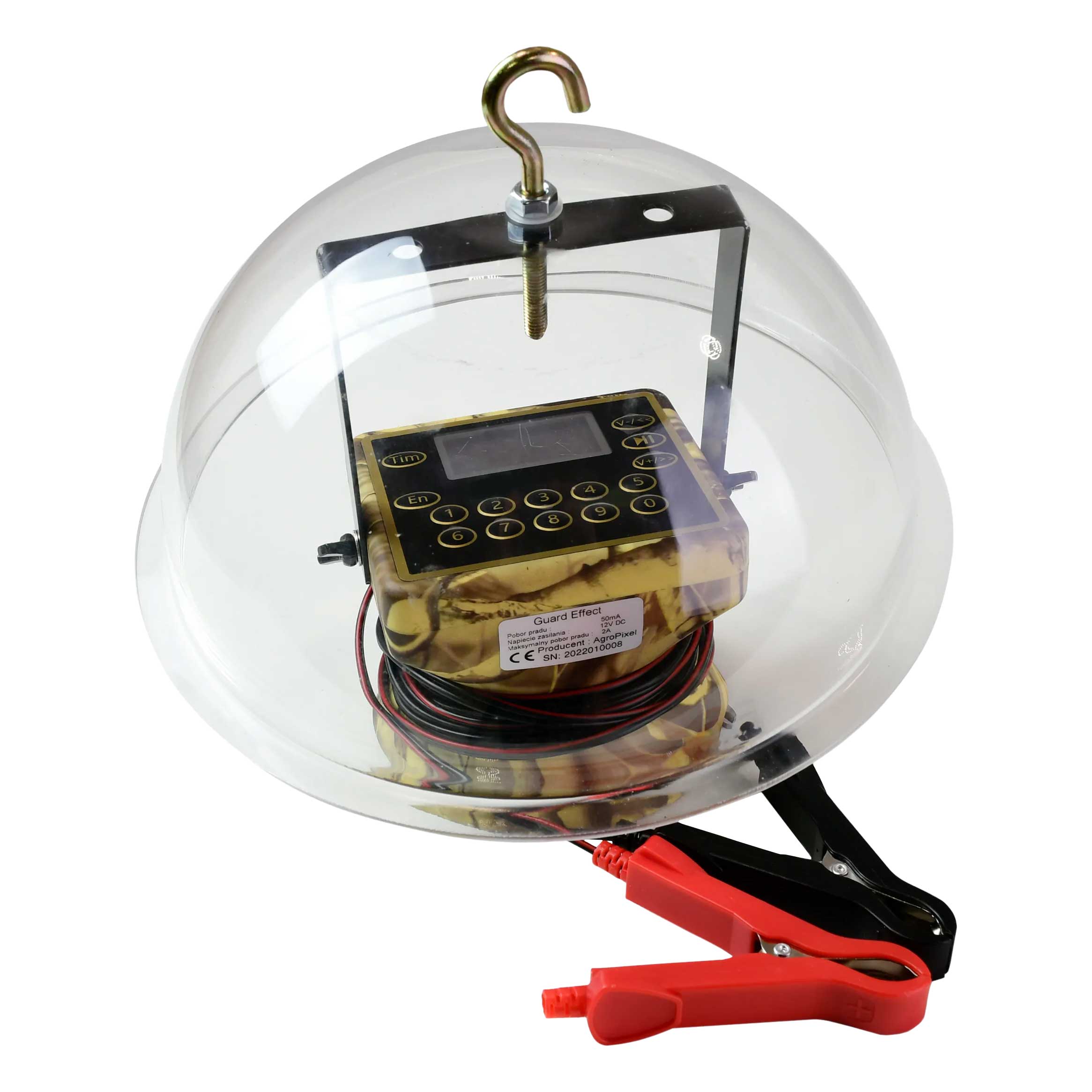 Urządzenie Guard Effect jest odporne na działanie warunków atmosferycznych, na czytelny wyświetlacz, duży pulpit sterowniczy z przyciskami, dzięki któremu możemy w prosty i wygodny sposób zarządzać ustawieniami odstraszacza. Płynna regulacja głośności pozwala na dostosowanie pracy odstraszacza w zależności od powierzchni chronionego obszaru.