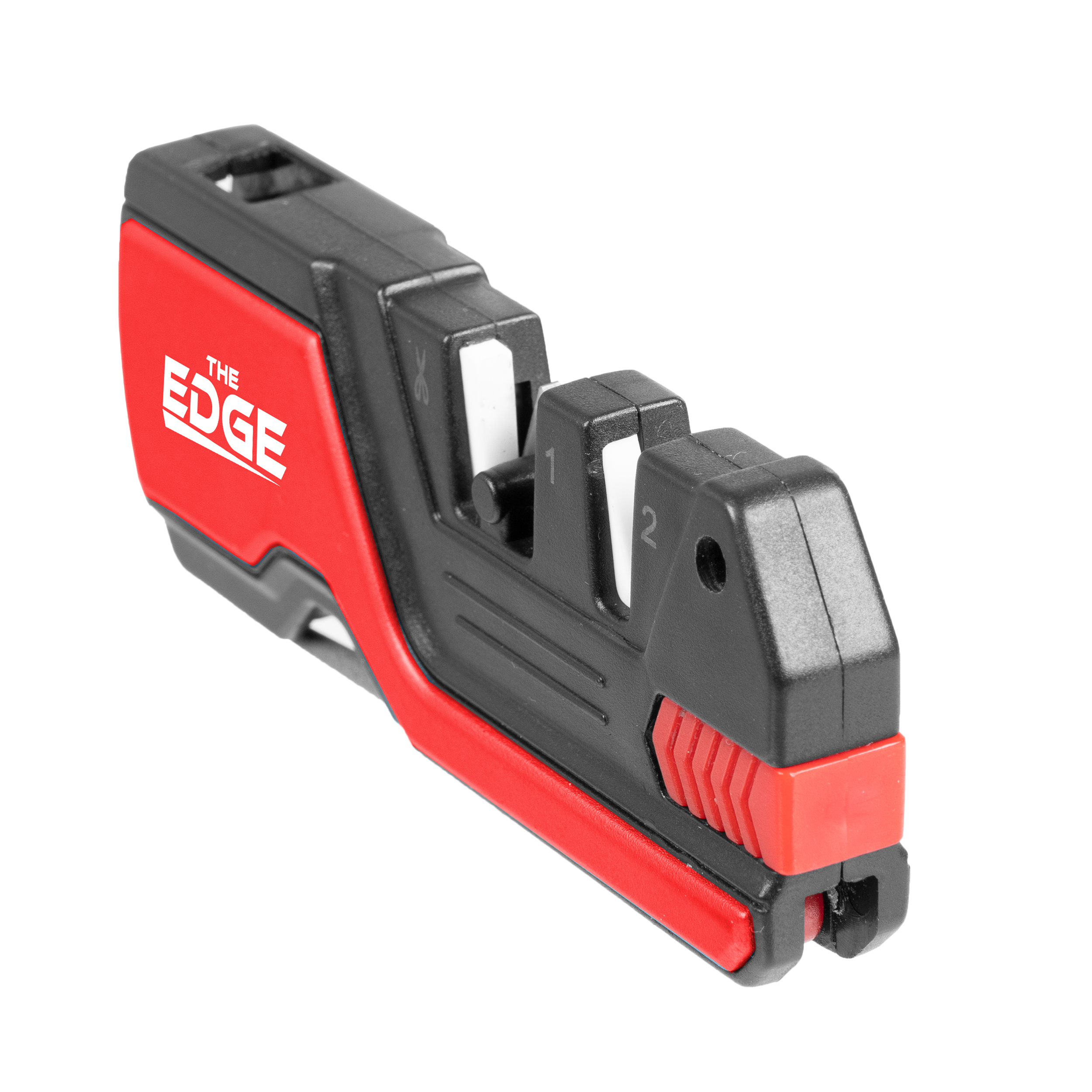 THE EDGE bushSHARP to wielofunkcyjna ostrzałka turystyczna, która dzięki swej poręcznej wielkości doskonale sprawdzi się jako uzupełnienie zestawu EDC każdego pasjonata outdooru i survivalu. Ostrzałka z łatwością mieści się w każdej kieszeni, ma lekką polimerową konstrukcję oraz otwór na linkę lub kółko do kluczy. Elementem, który wyróżnia ostrzałkę The EDGE bushSHARP, jest jej wszechstronność. Za pomocą jednej kieszonkowej ostrzałki możemy ostrzyć noże z ostrzem gładkim i ząbkowanym, nożyczki, haczyki wędkarskie oraz noże myśliwskie z hakiem do skórowania. Pomimo niewielkich rozmiarów, w ostrzałce znajdują się aż 3 strefy ostrzenia: