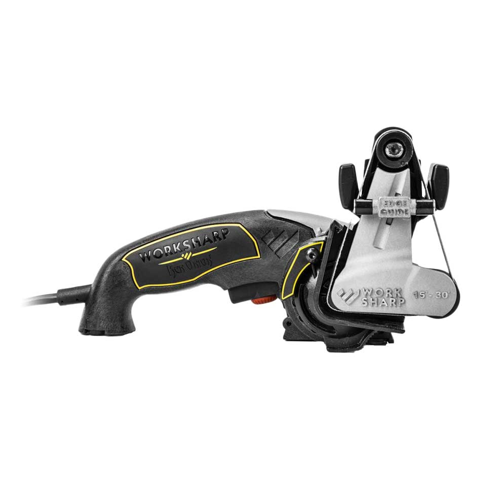 Ostrzałka Elektryczna Work Sharp Ken Onion Edition to niezwykle udany efekt współpracy specjalistów z Work Sharp oraz znanego twórcy noży Kena Oniona, odpowiedzialnego między innymi za wynalezienie systemu wspomagania rozkładania głowni "SpeedSafe".