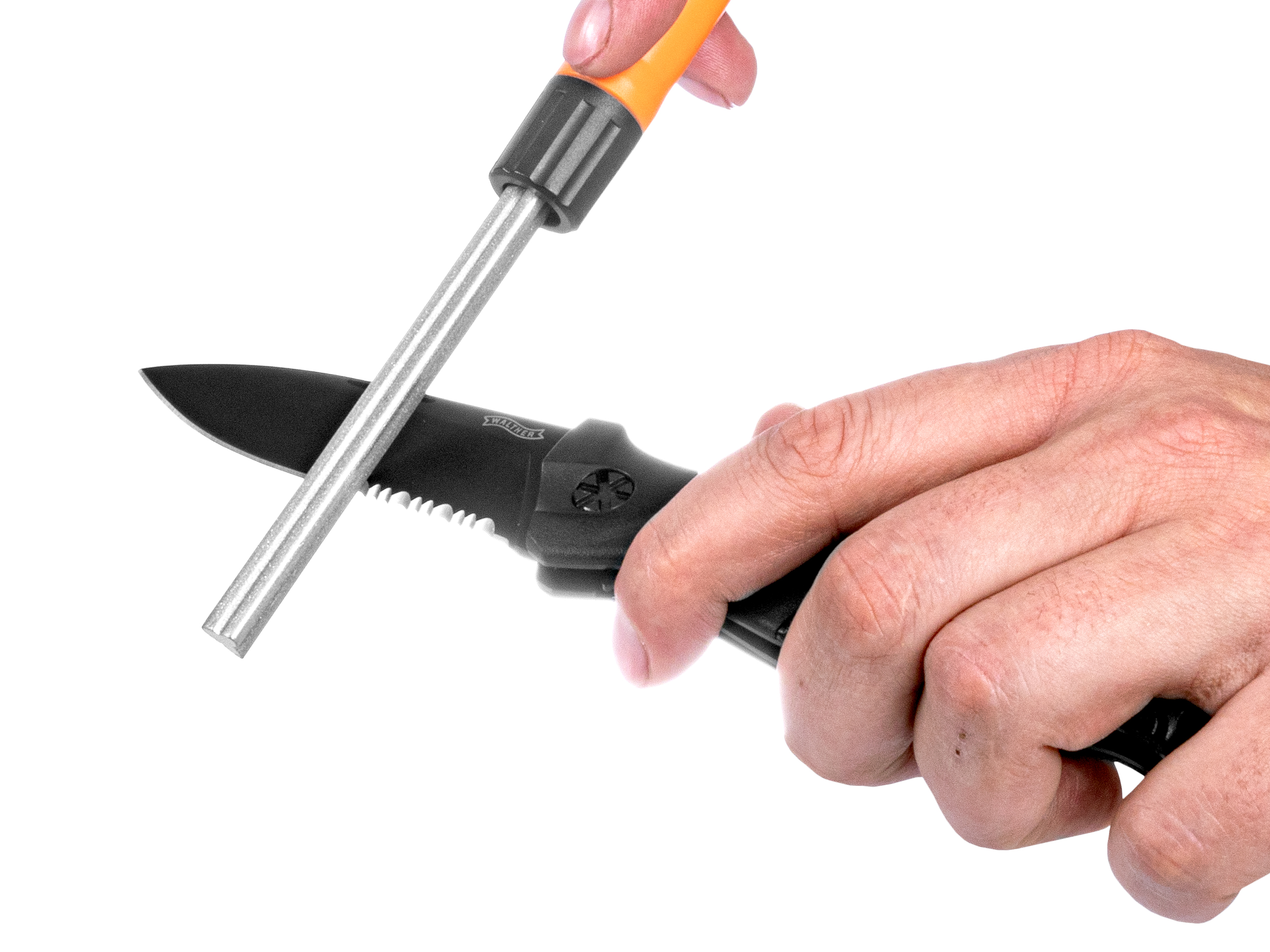 Diamentowy pręt ostrzący o trójkątnym profilu, stworzono z myślą o ostrzeniu krawędzi ząbkowanych. Jednak za pomocą płaskiej części naostrzymy także ostrza o gładkiej krawędzi np. noże edc i noże do filetowania.