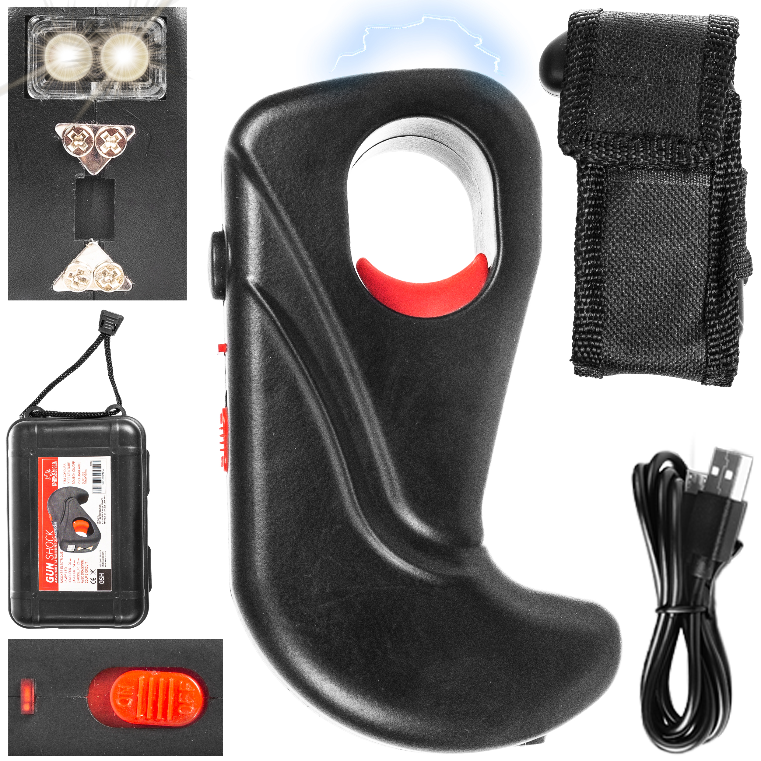 Piranha Gun Shock to najmniejszy paralizator na rynku generujący prąd o napięciu aż 2 000 000 V, wyposażony dodatkowo w latarkę LED o strumieniu światła 130 lumenów.