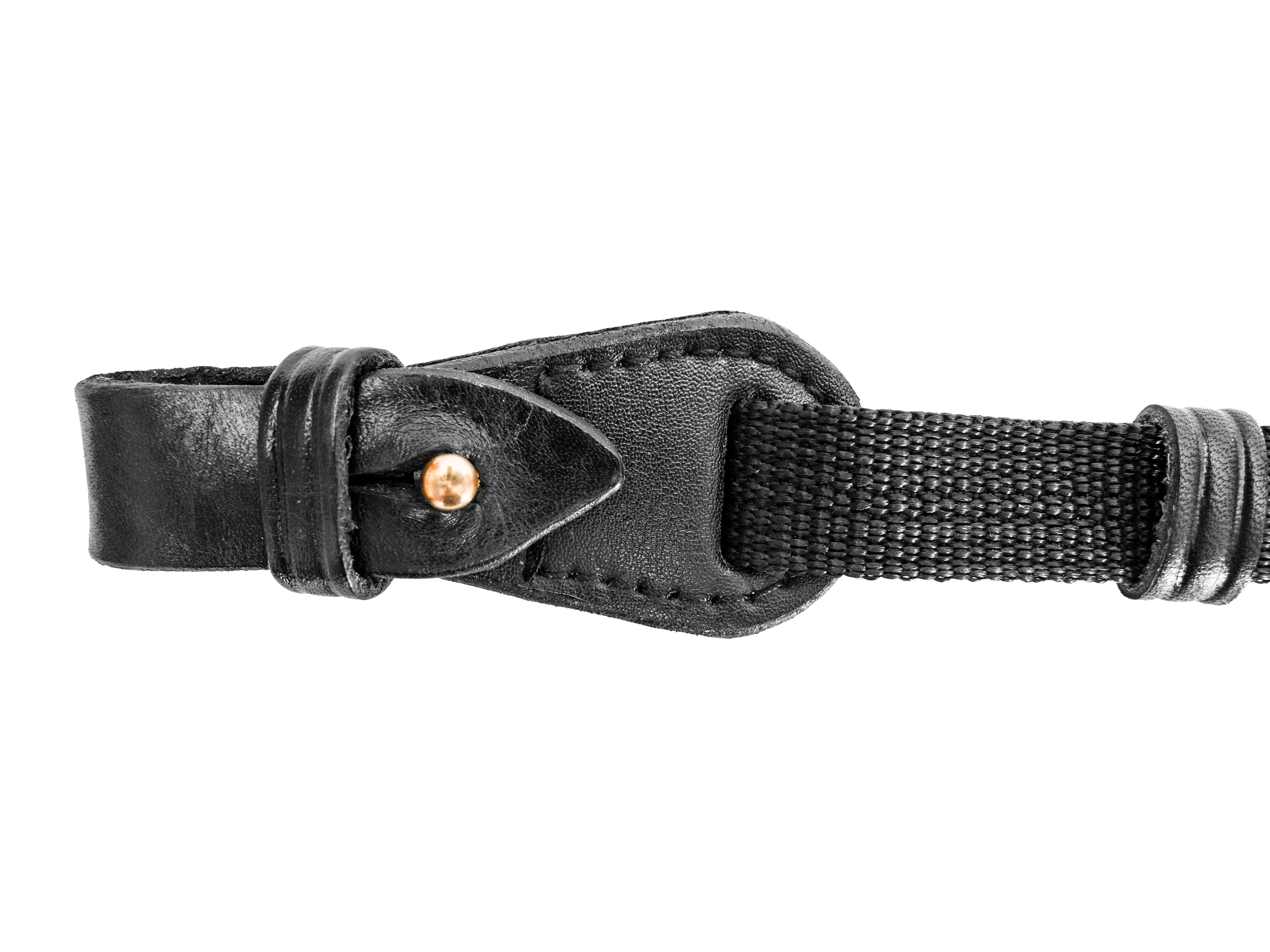 Pas mocujemy do bączków broni za pomocą skórzanych troków zapinanych na metalowe knopiki. Rozwiązanie jest nie tylko proste i wytrzymałe, pozwala także na błyskawiczne odłączenia pasa od broni. Dzięki zastosowaniu pętli na palce możemy lepiej stabilizować broń na ramieniu.