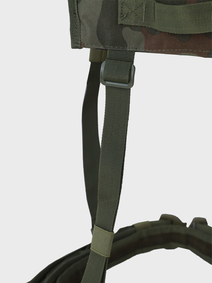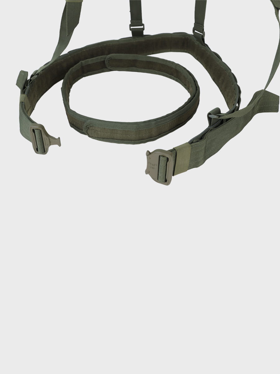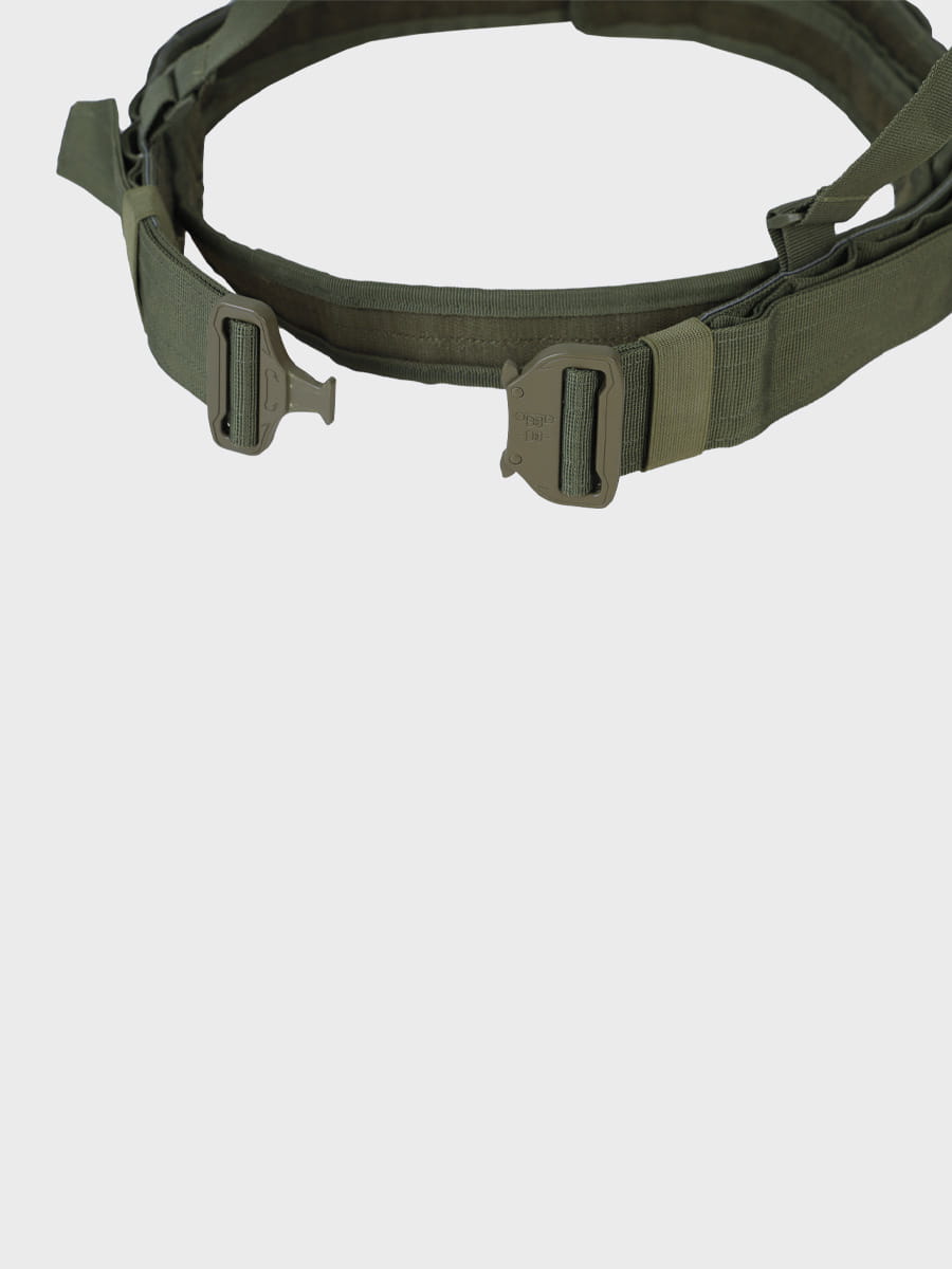 Wzmocnione szlufki Molle umożliwiają przypięcie różnego rodzaju dodatkowego wyposażenia co zwiększa funkcjonalność pasa i dostosowanie go do indywidualnych potrzeb użytkownika. Regulowany obwód pozwala na precyzyjne dopasowanie pasa do sylwetki.