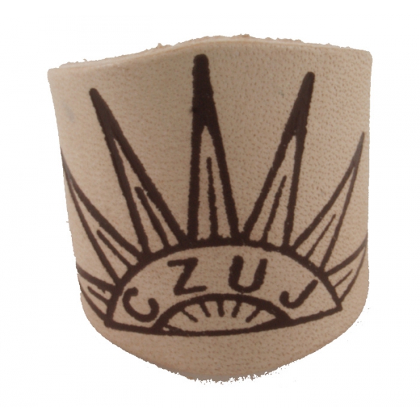 Wykonany ze skóry z wypalonym napisem "Czuj".
